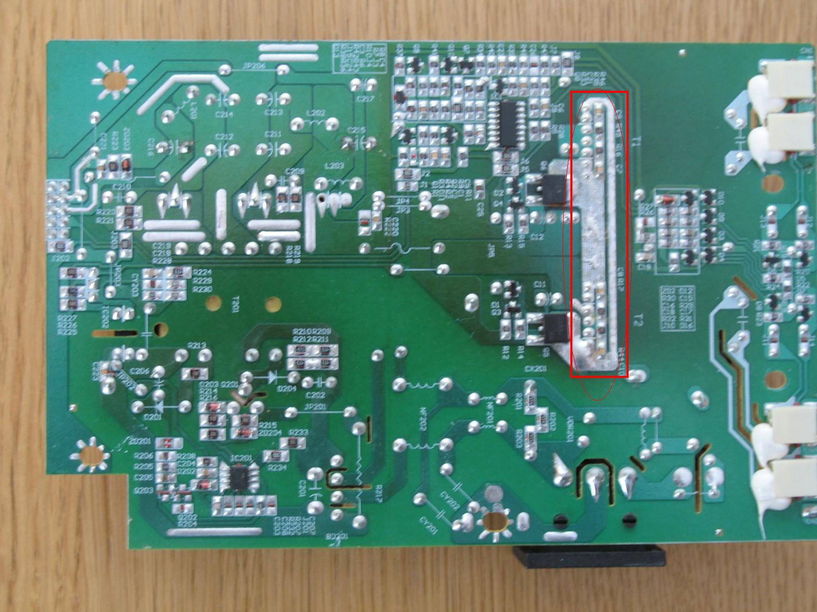 Caps replaced – C216, C215 (470uF 25V), C214, C213, C212, C211 (680uF 25V).