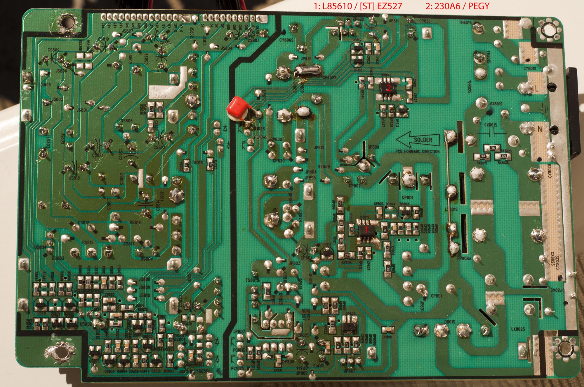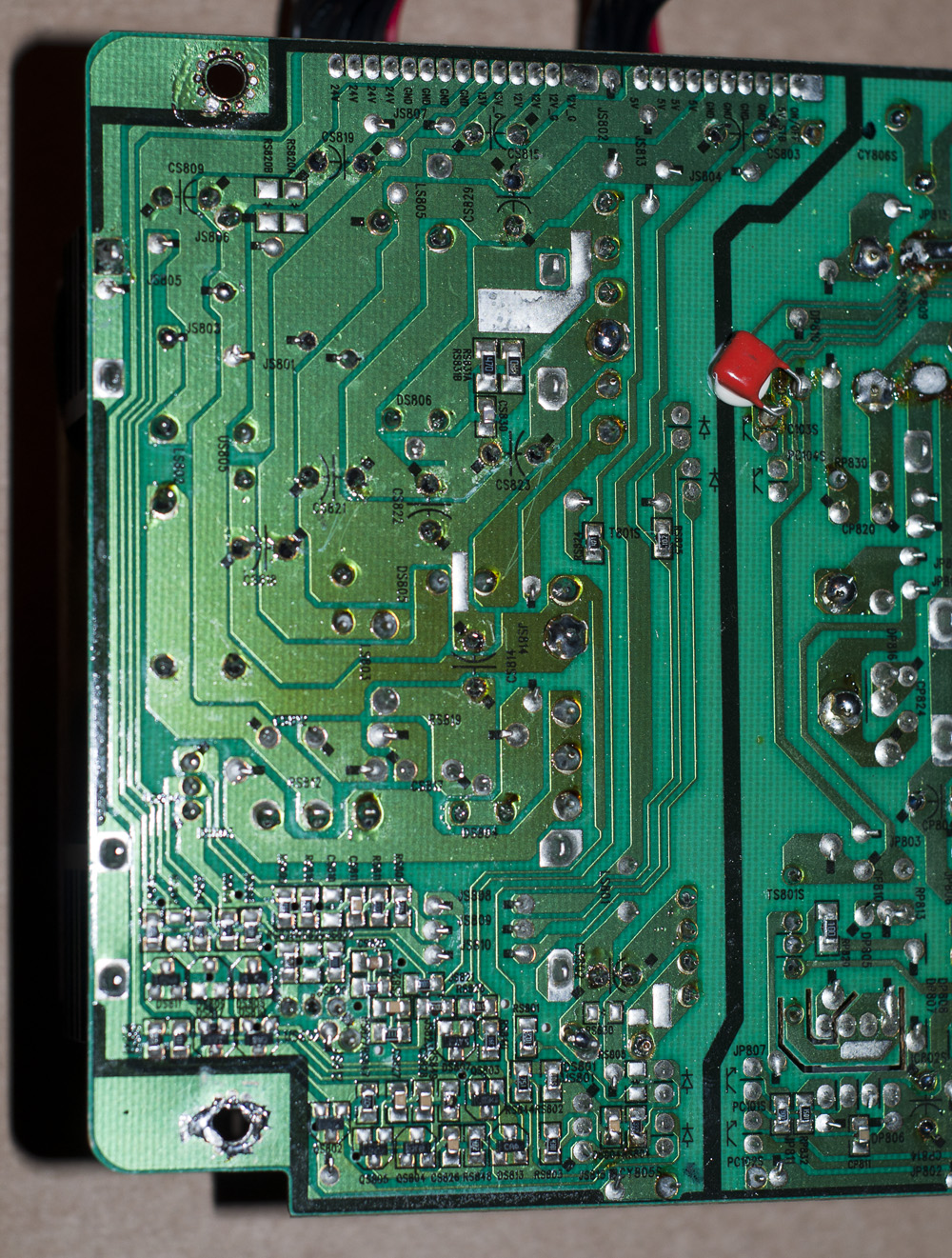 Changed a bunch of caps (bottom leakage). Reheated/solder entire PSU. All this whitout any positive effect.