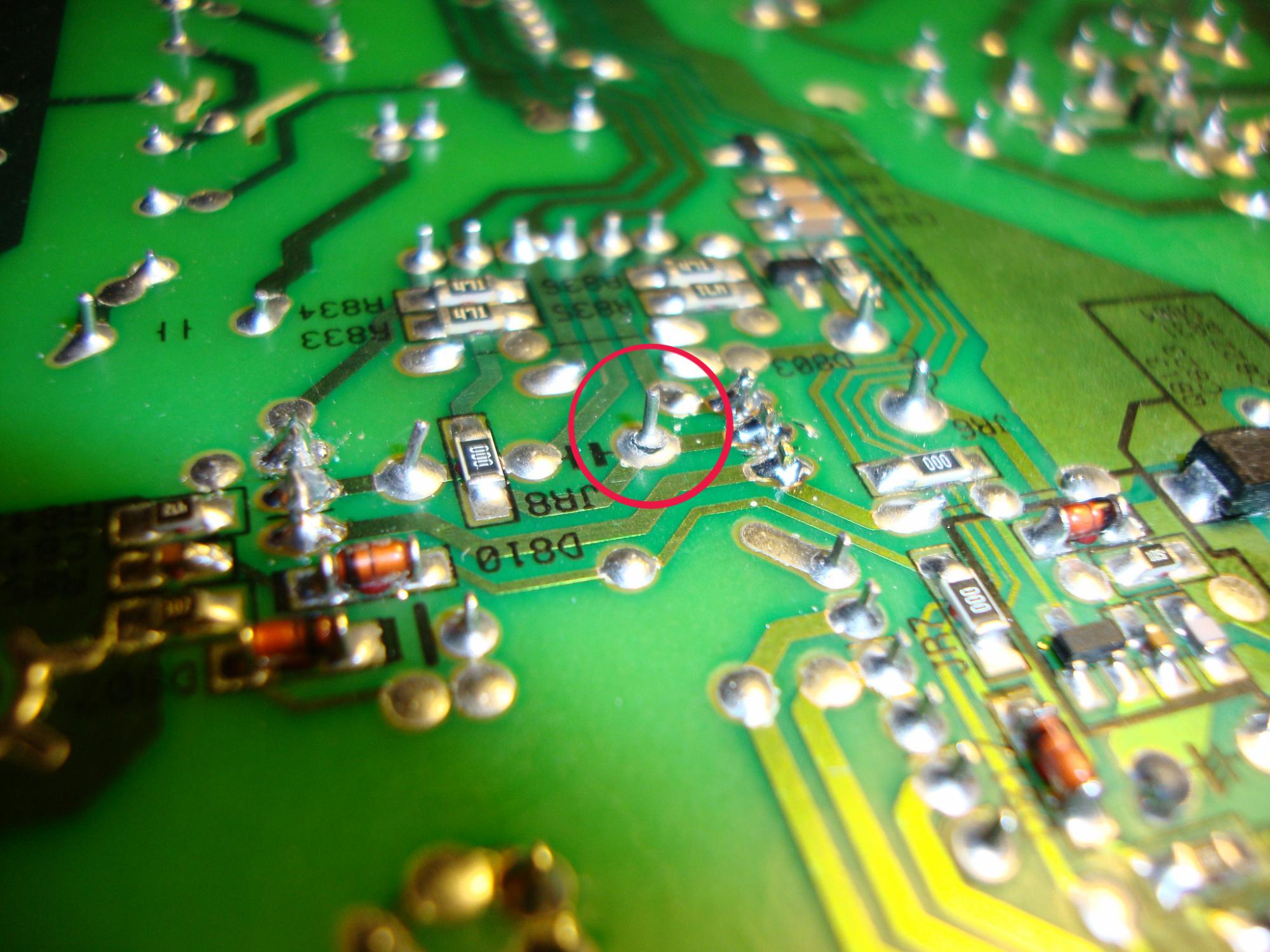 So I first cleaned out the old solder and to be honest I kind of had my suspicion against it. But it was still as dead as before. So I soldered a small isolated copper wire between point 2 and 3 now the circiut is complete.
