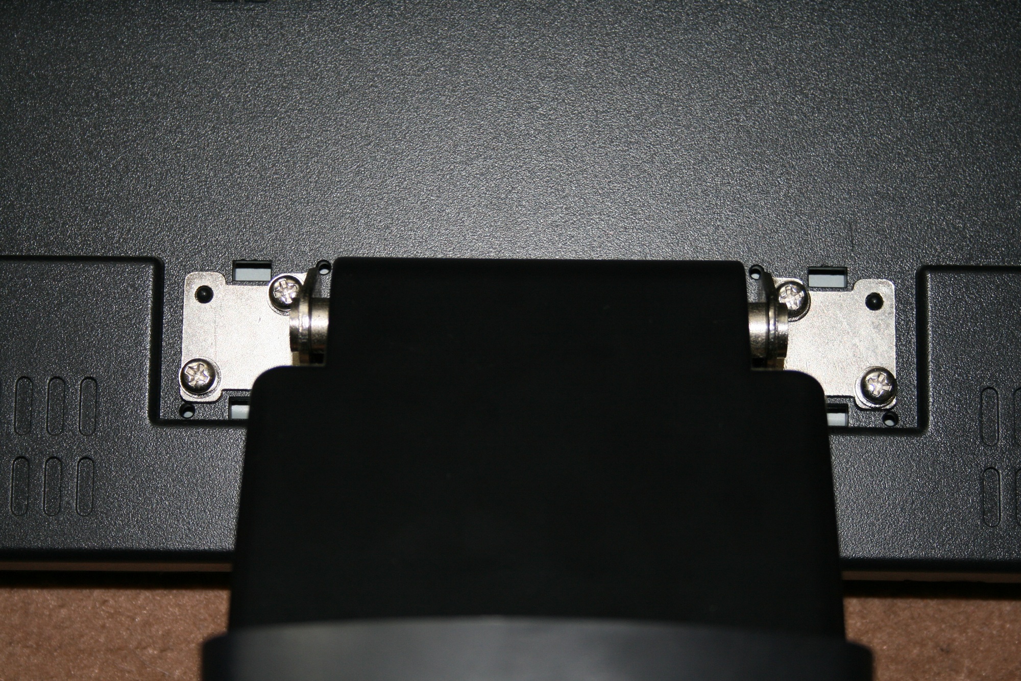 Taking the monitor apart ( Regulars may skip ) : There are 2 caps on the left and right of the stand where it attaches to the monitor these are easily removed with a flat headed screwdriver. This reveals 4 screws that need to be taken out to remove the stand.