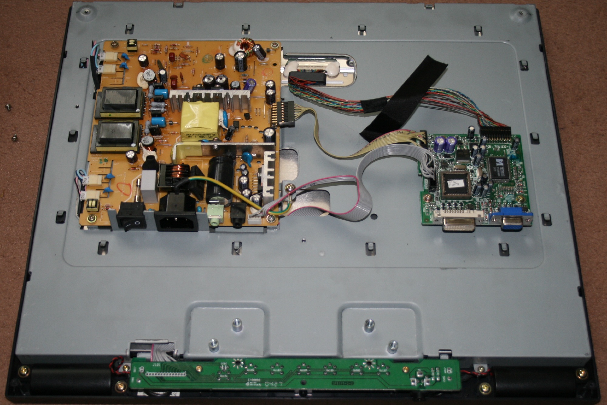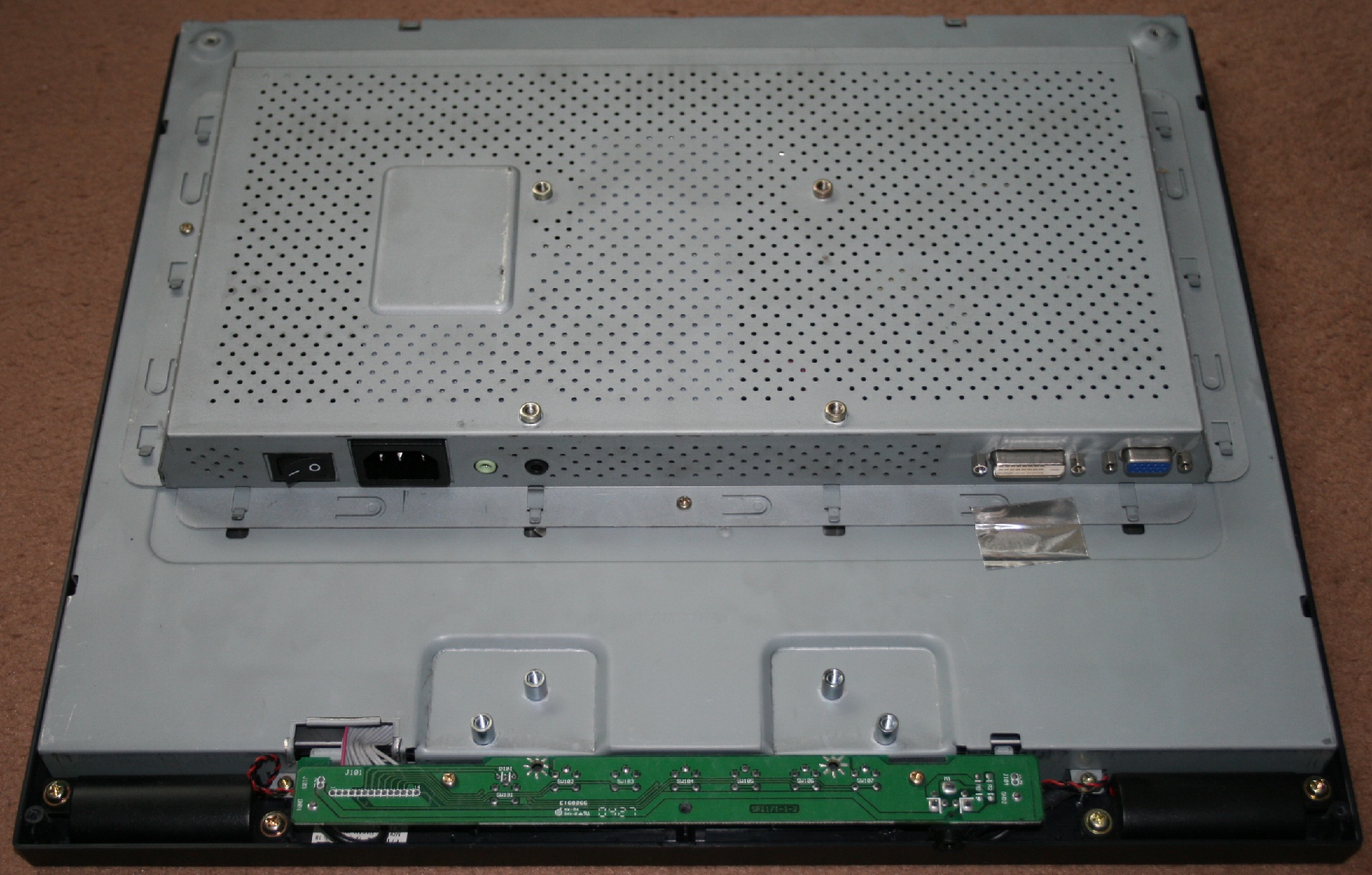 There are then 5 screws around the back of the monitor 2 small at the top and 3 larger ones at the bottom which need to be taken out. The monitor then needs to be carefully pulled apart from the bottom then down the sides which allows you to pull the back off releasing it at the top.
