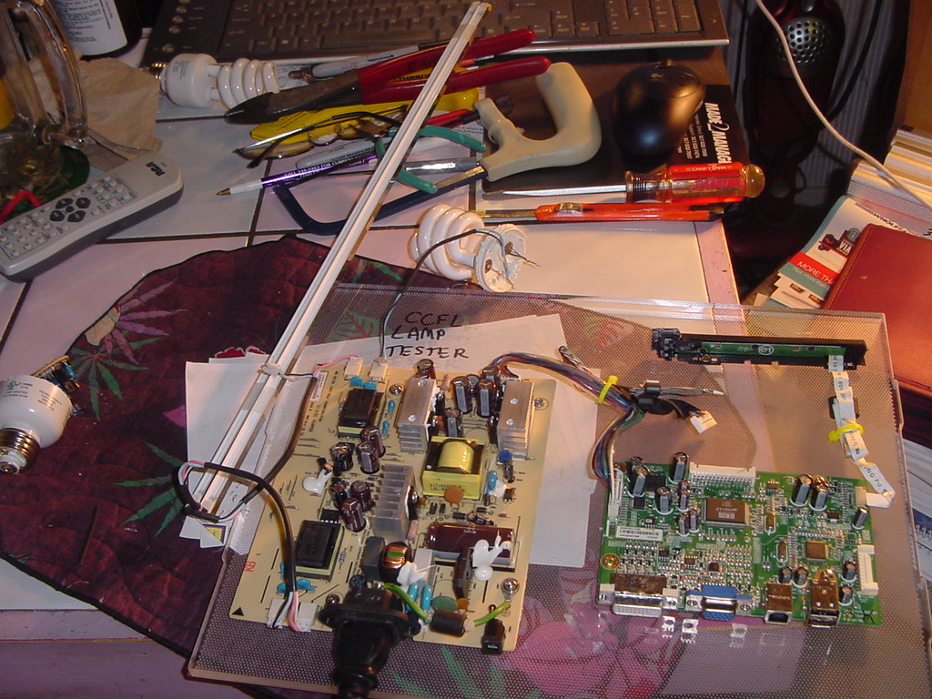 Do not throw away those broken CFL (14Watts or smaller), you can use them for testing your LCD monitor inverter circuits without buying spare lamps for testing.