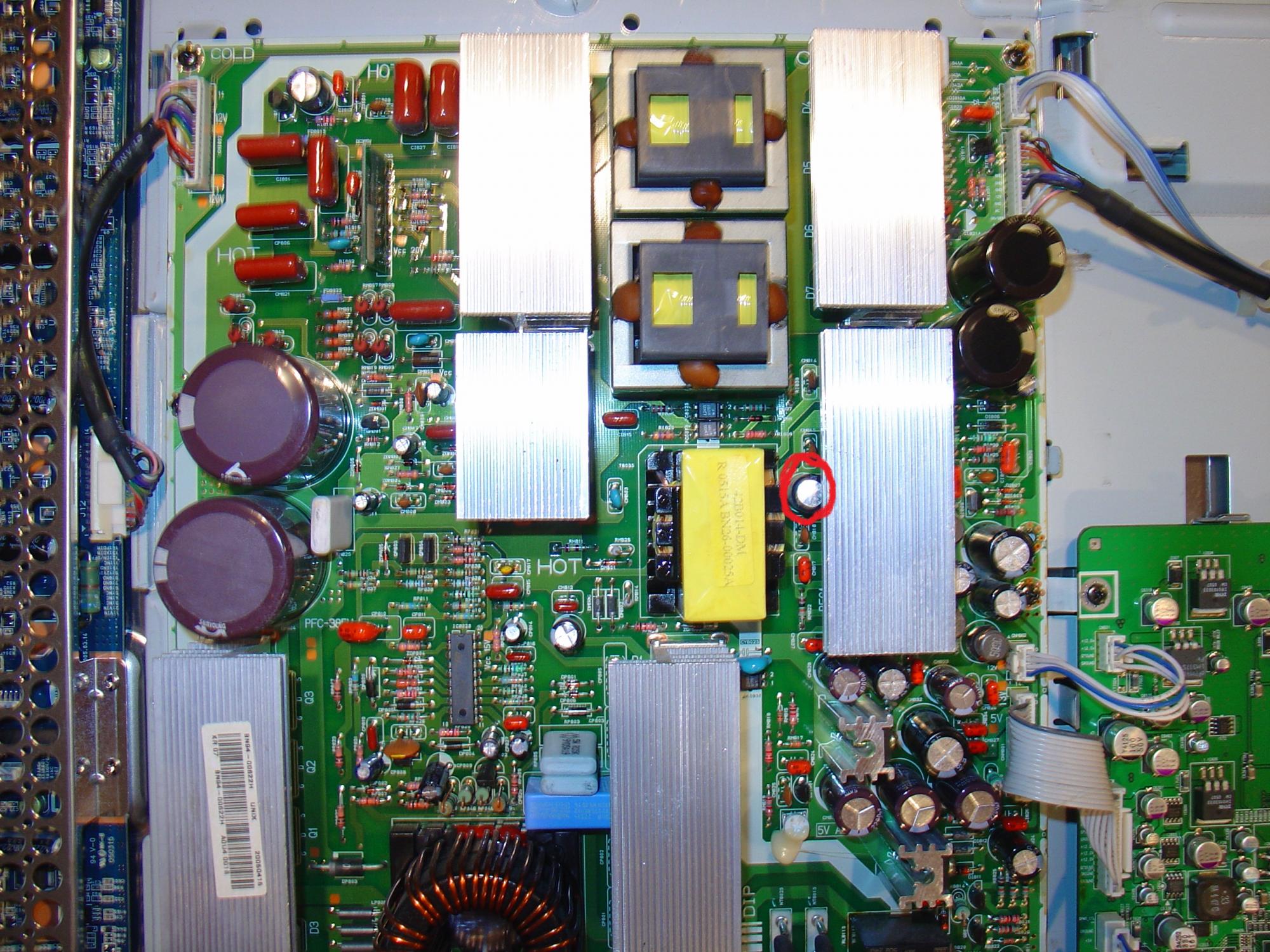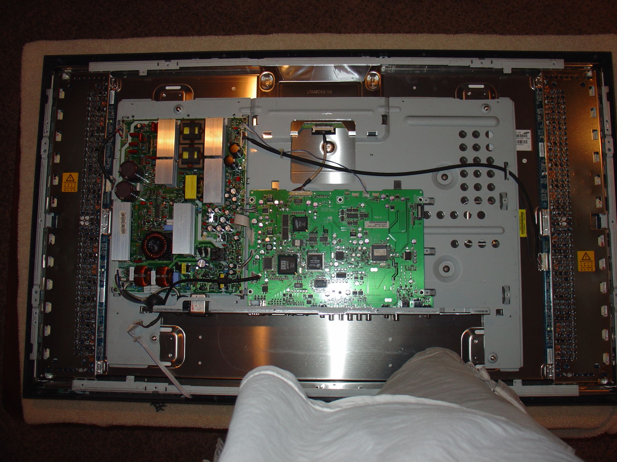 I pulled the back cover off and gave a quick inspection of the power board and logic board and nothing stood out.