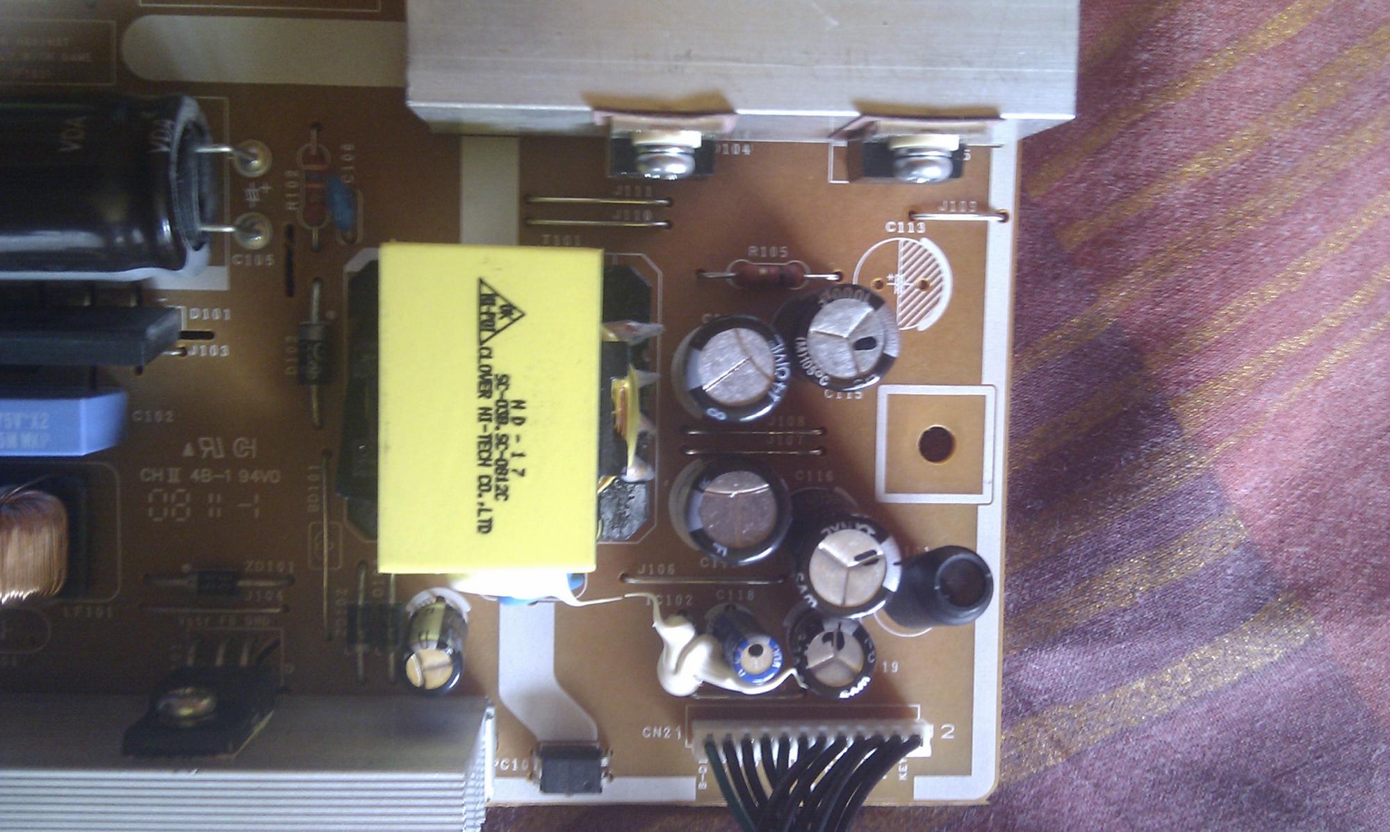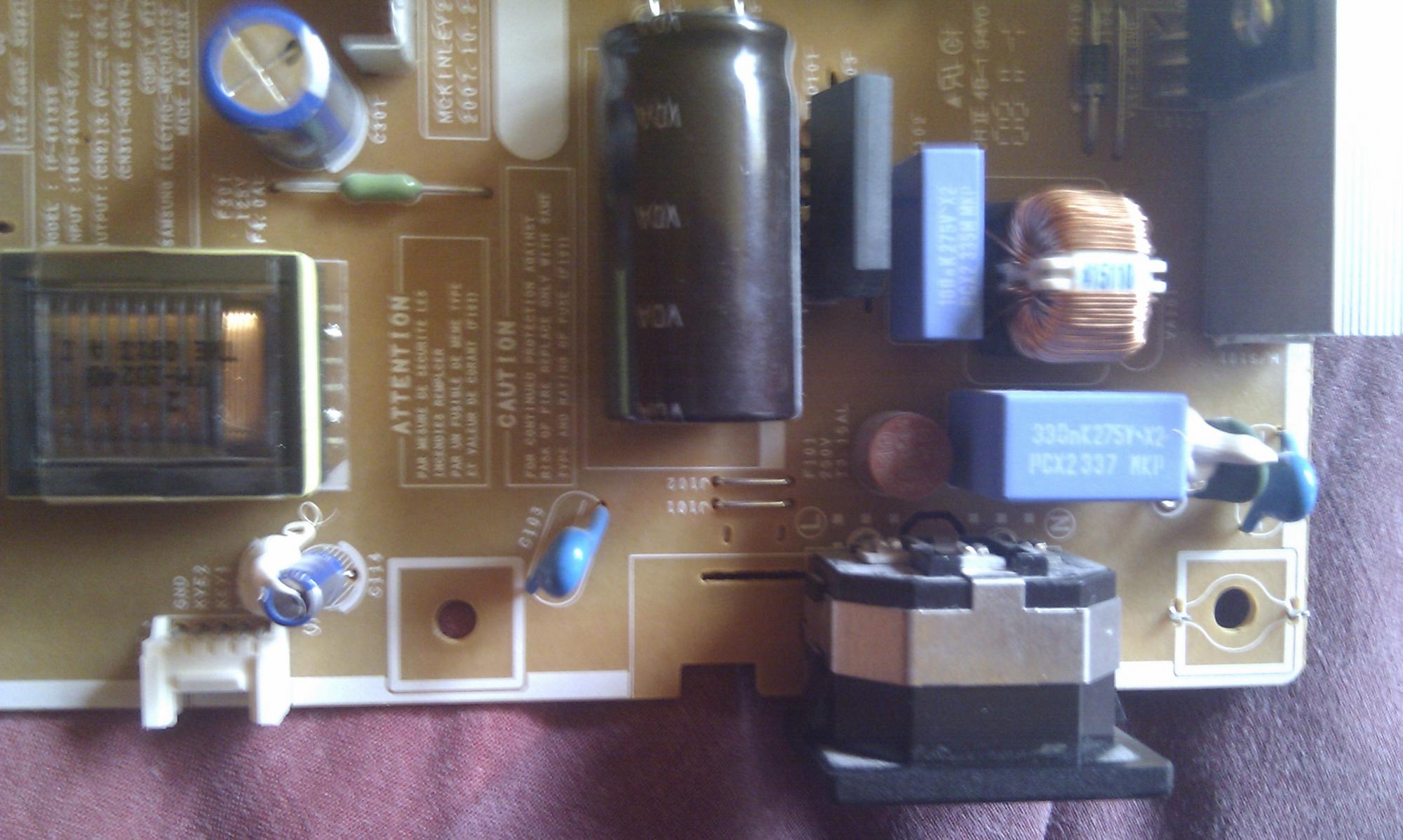 yup i just did replaced the 820uF/25V caps near the output area for the ccfl, high pitch noise is heard and tested some components, problem is the green fuse resistor has no continuity using the tester with beep continuity.. trying to find out if the mbr20100ct is bad, led indicates power which is the blue led. almost the same problem with ab101