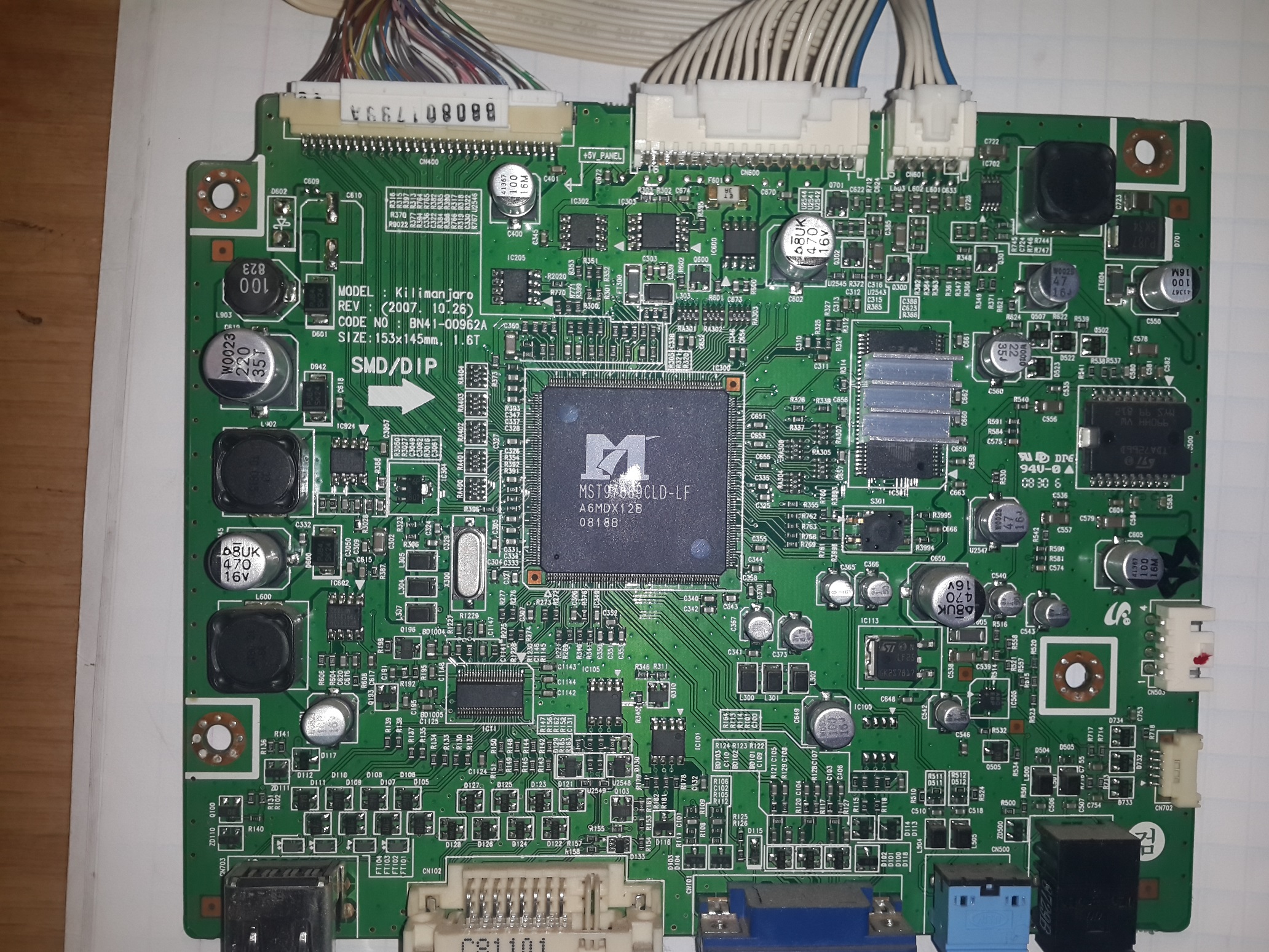 A yellow light was flashing on my monitor. It was like it was constantly cutting power. When I opened it up, I saw that the big capacitor in the high voltage line was leaking. I replaced it. When I turned it on for the first time, it had the same problem again. But then, interestingly, it got better. The yellow light was on steady. But the monitor wouldn't turn on. When I examined them with a thermal camera, I saw that the Fli5961-LF reached 50 degrees Celsius and the EM636165TS next to it reached 100 degrees Celsius and was drawing high current on the motherboard....
