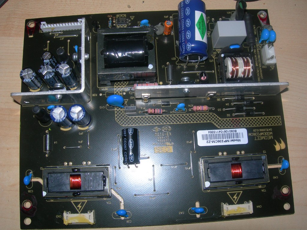 Anyway the fault is that the power LED flashes, but the display doesn't turn on. I believe it to be a Vestel chassis, probably using a 17PW26 PSU of some kind, which typically means bad caps.