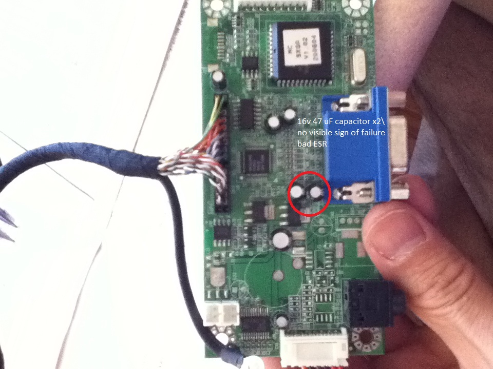 Recently got an ESR meter and found that one of 16volt 47 uF capacitors was showing a high esr value. They were located on the video board by the vga input connector (see picture)