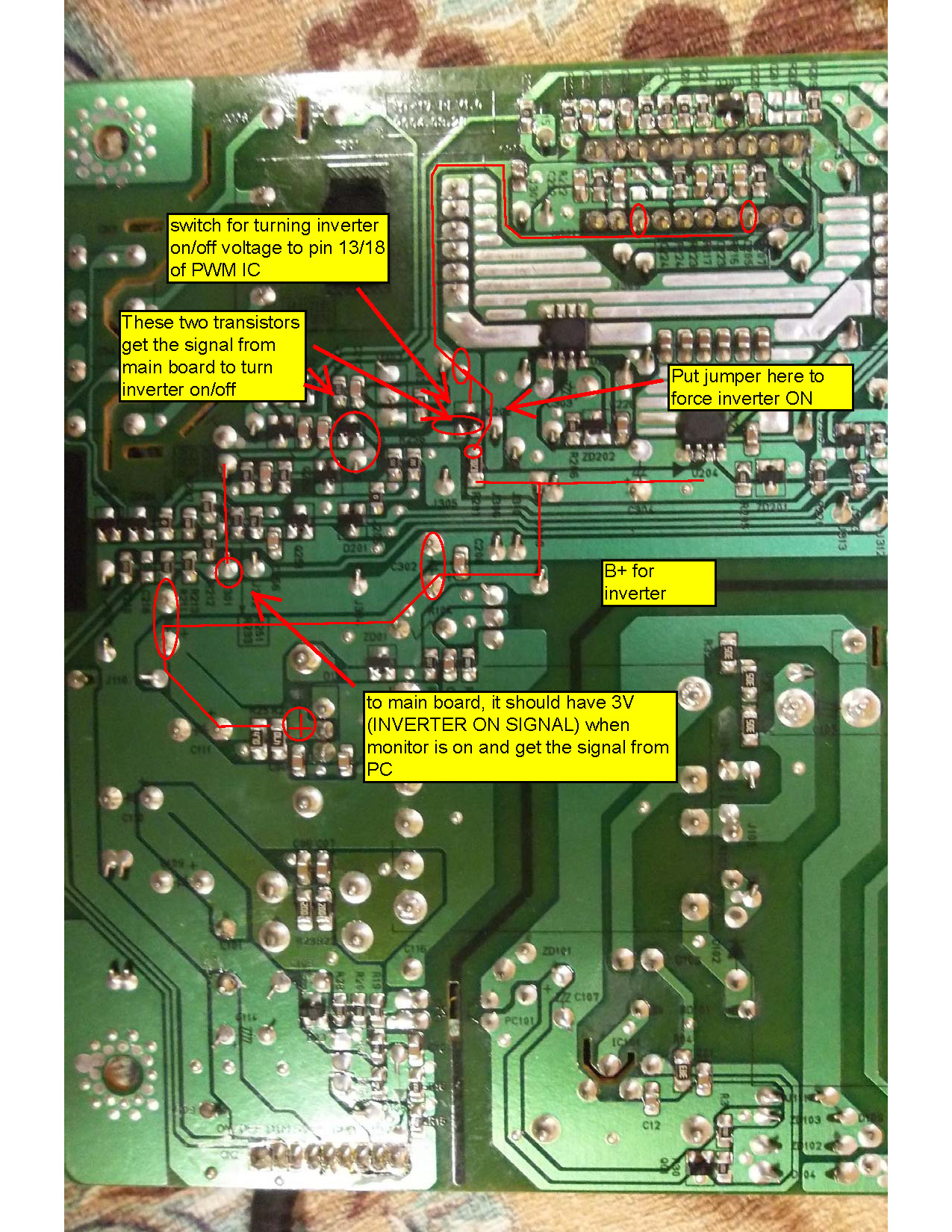 We need to trace out where pin13 and 18 go to, so as RTECH said, GOOD AND FOCUSED pictures of both sides of the board are needed to trace out the connections.