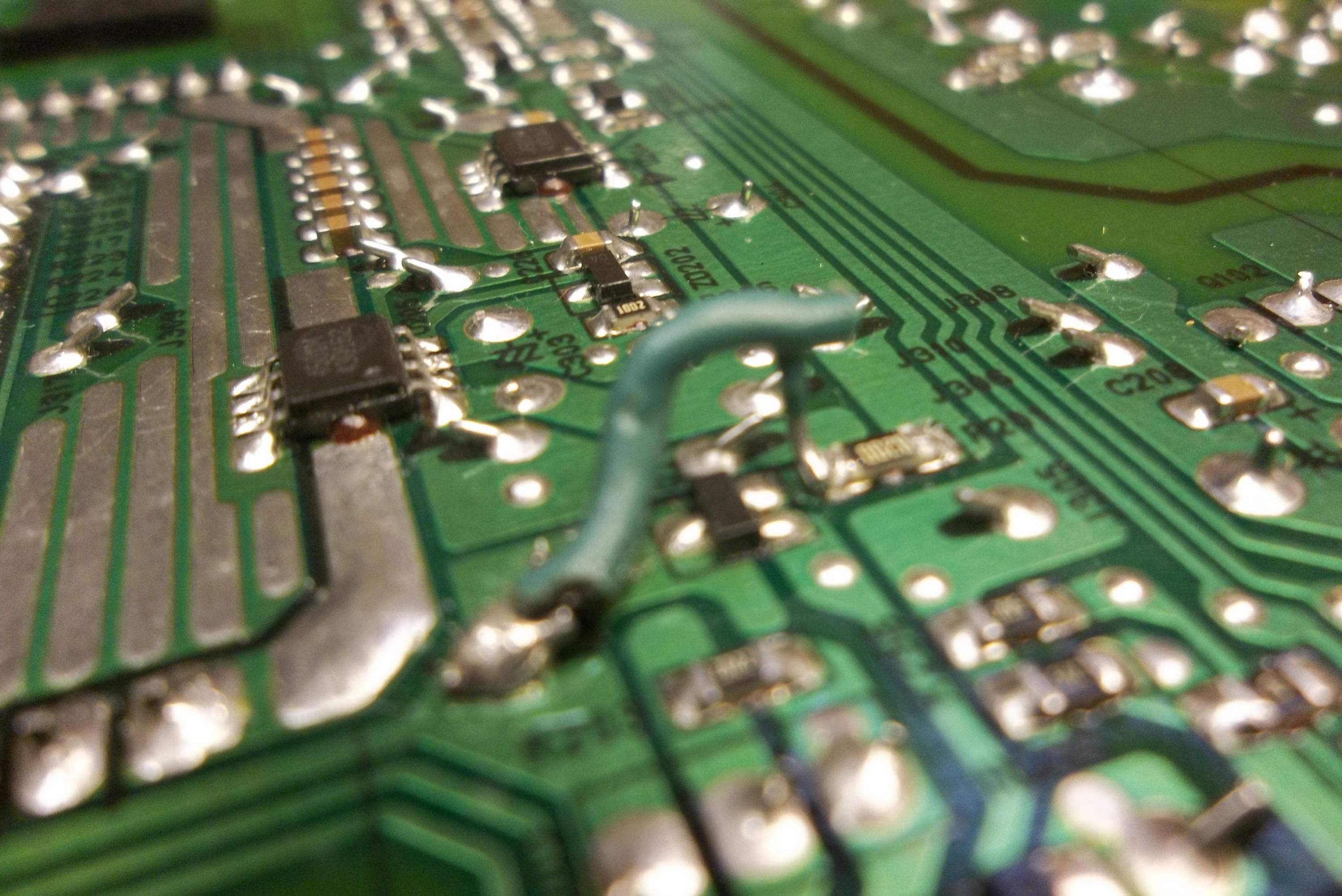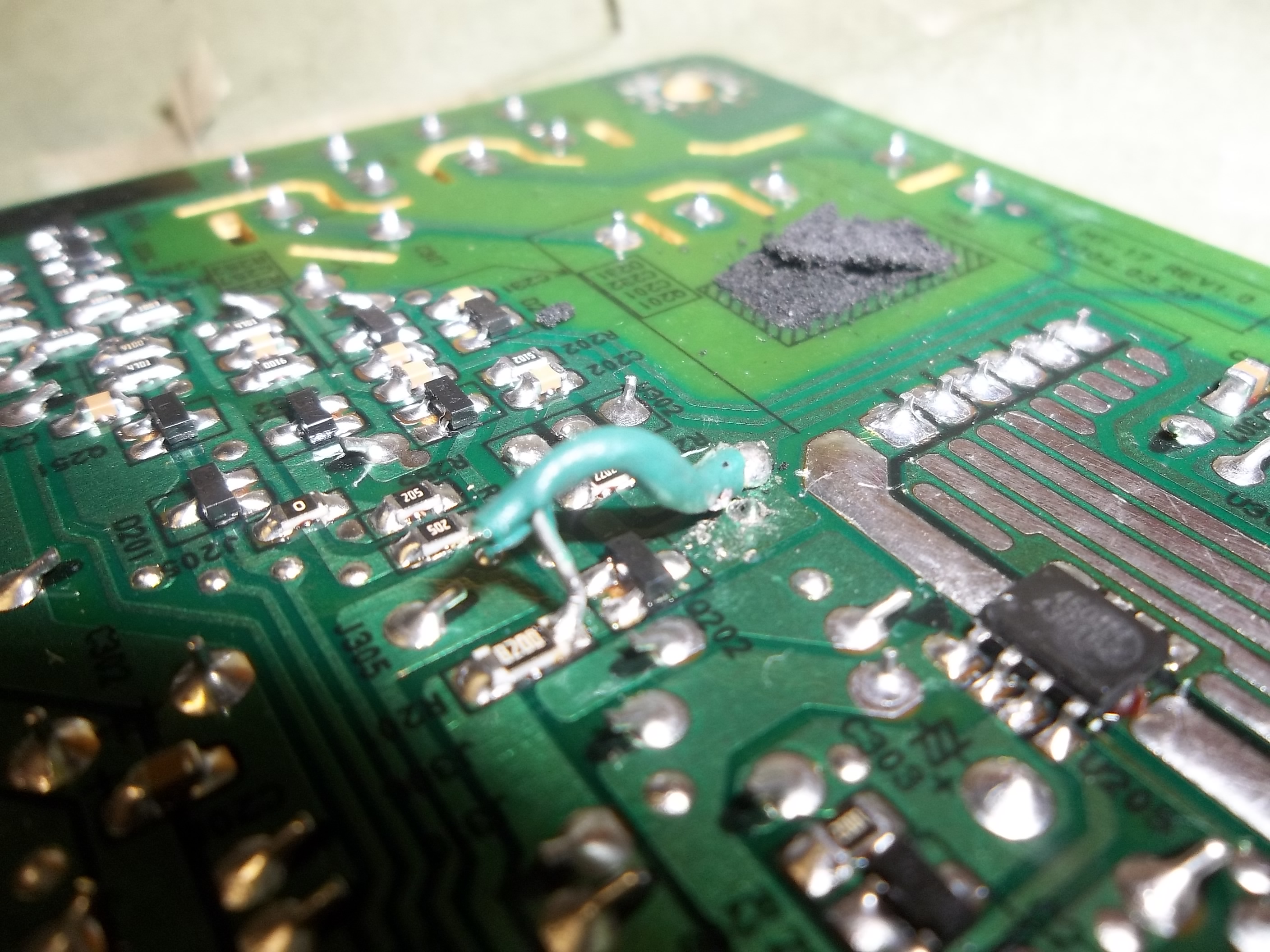 the jumper was connected from one end of the resistor (upper end) that has a black and white number on it, 8200, I believe. the other end of the jumper went above the transistor where there was a solder through component and a small round solder spot with no through the board component in it.