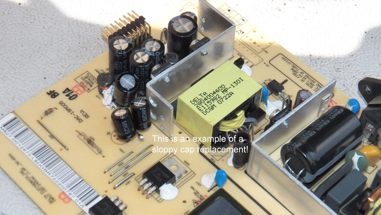 You can tell the person who tried to replace the caps only replaced the obviously buldged ones because the other original Capxon caps are still left on the board.
