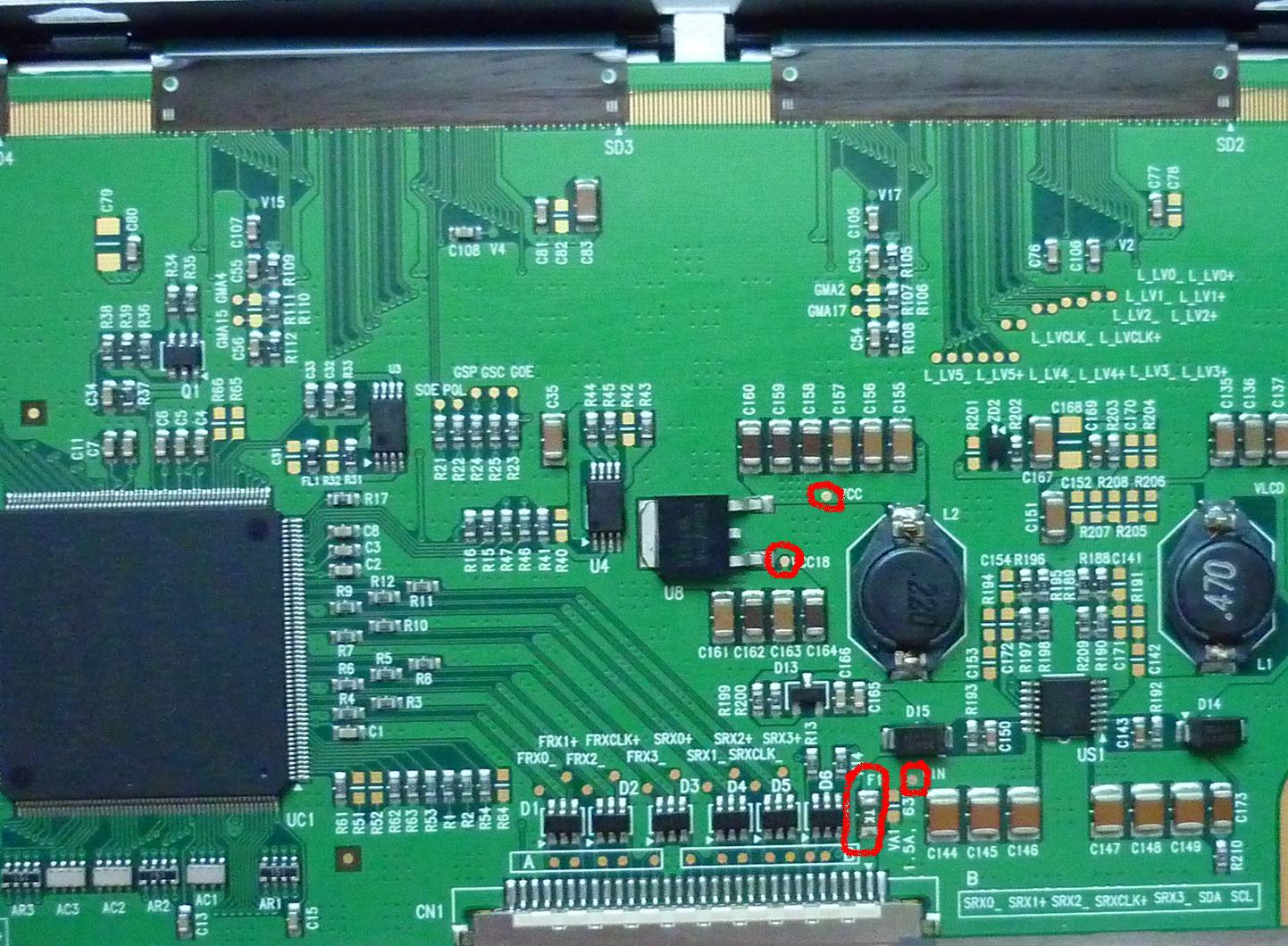 1) There are 3 points to measure. VCC18, VCC, and VIN. Put your black probe on a ground screw or chassis and measure the DC voltage of the three. Put your red probe on each circled point. Report your findings.