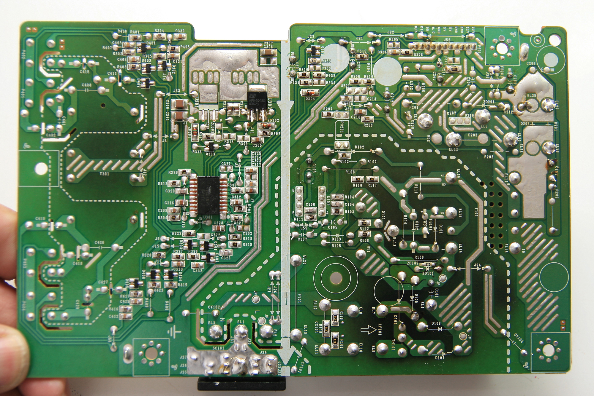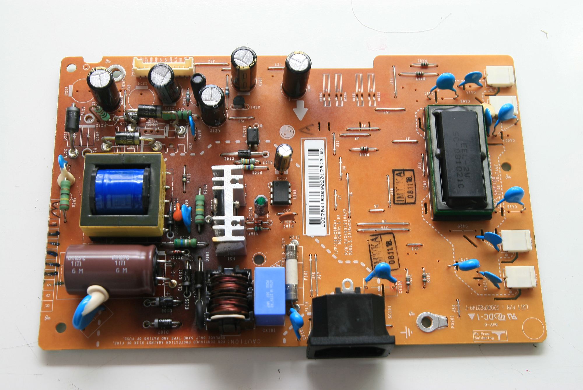 On the back of casing there was a burn mark due to over heating, when I opened the case up I found a very toasted power inverter board with a big cap 68uf 450v with bottom bulged out. I did a full recap except for one cap which I didn't have but tested well.