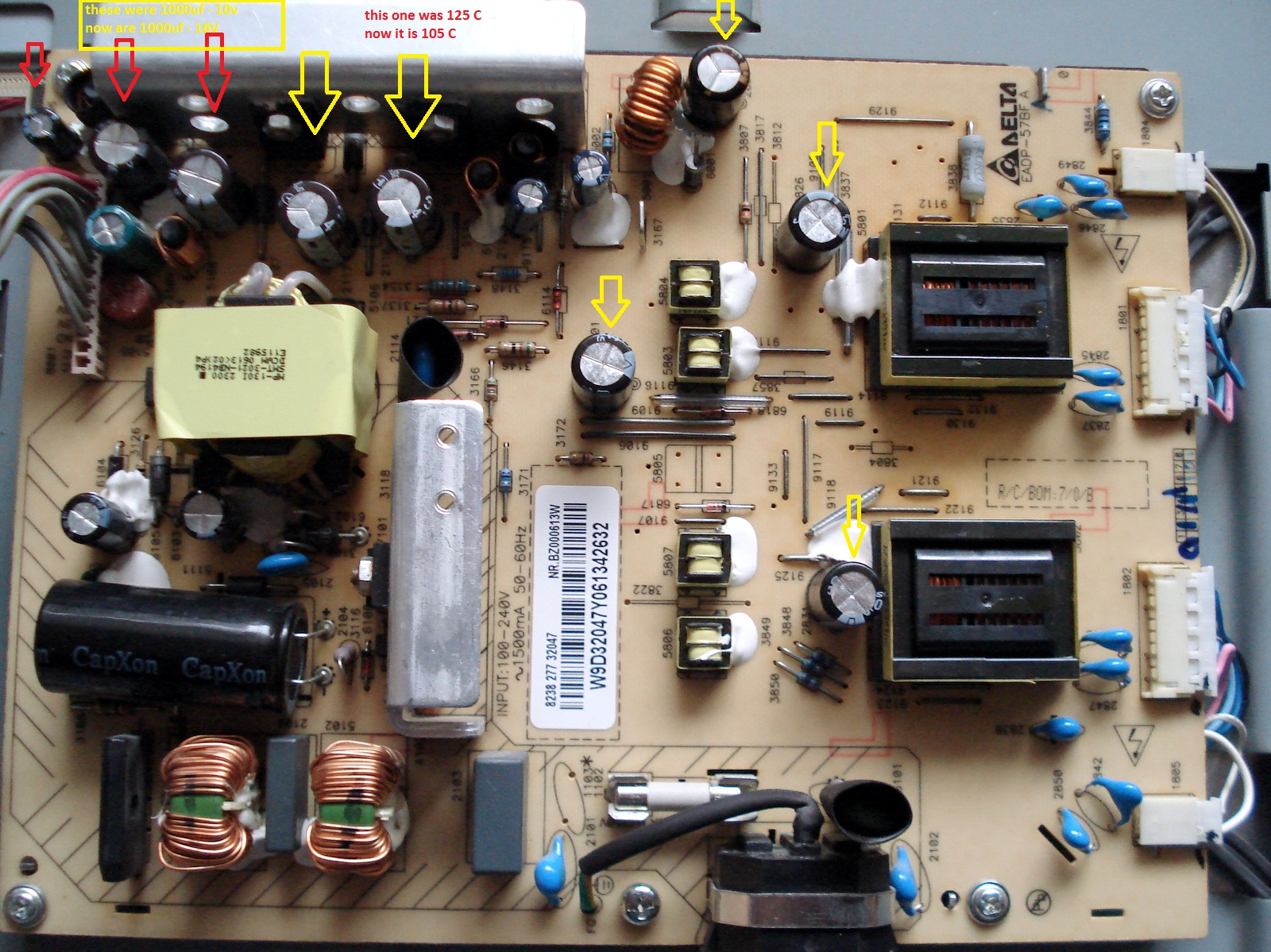 So I opened it. There were 3 or 4 bulging caps - 1 on video board and others on the power board. I have changed them and I got an improvement, but still facing the symptoms. Changing 4 or 5 more caps, which were looking good, did not help a lot (well, maybe just a little bit).