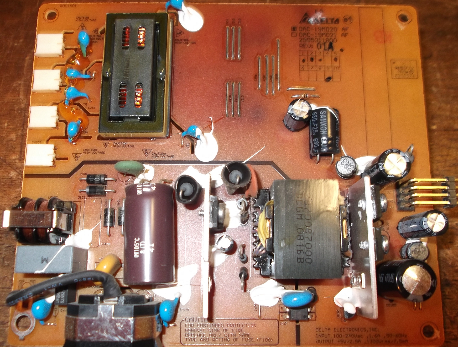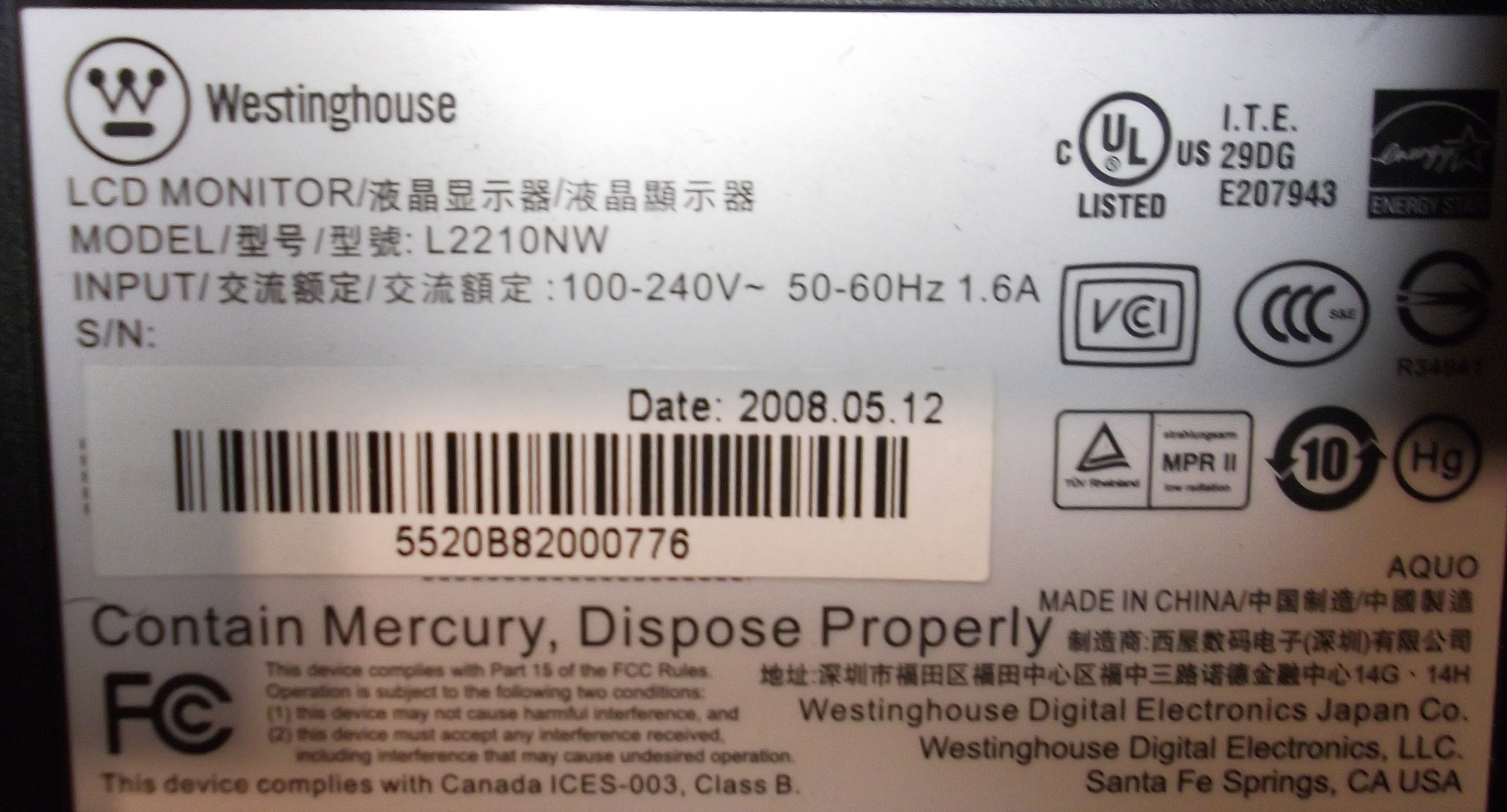 --Just inherited a Westinghouse L2210NW Monitor. I have not opened it up yet, as I have to many others in pieces at the moment. But, it shows the typical power on problems caused by the original Samxon caps. I finally managed to get it to come on, but the picture is all vertical stripes (see picture). Could this be caused by a bad power supply? If so, I will crack her open, take pictures, and order good Digikey Panasonic Caps, immediately.