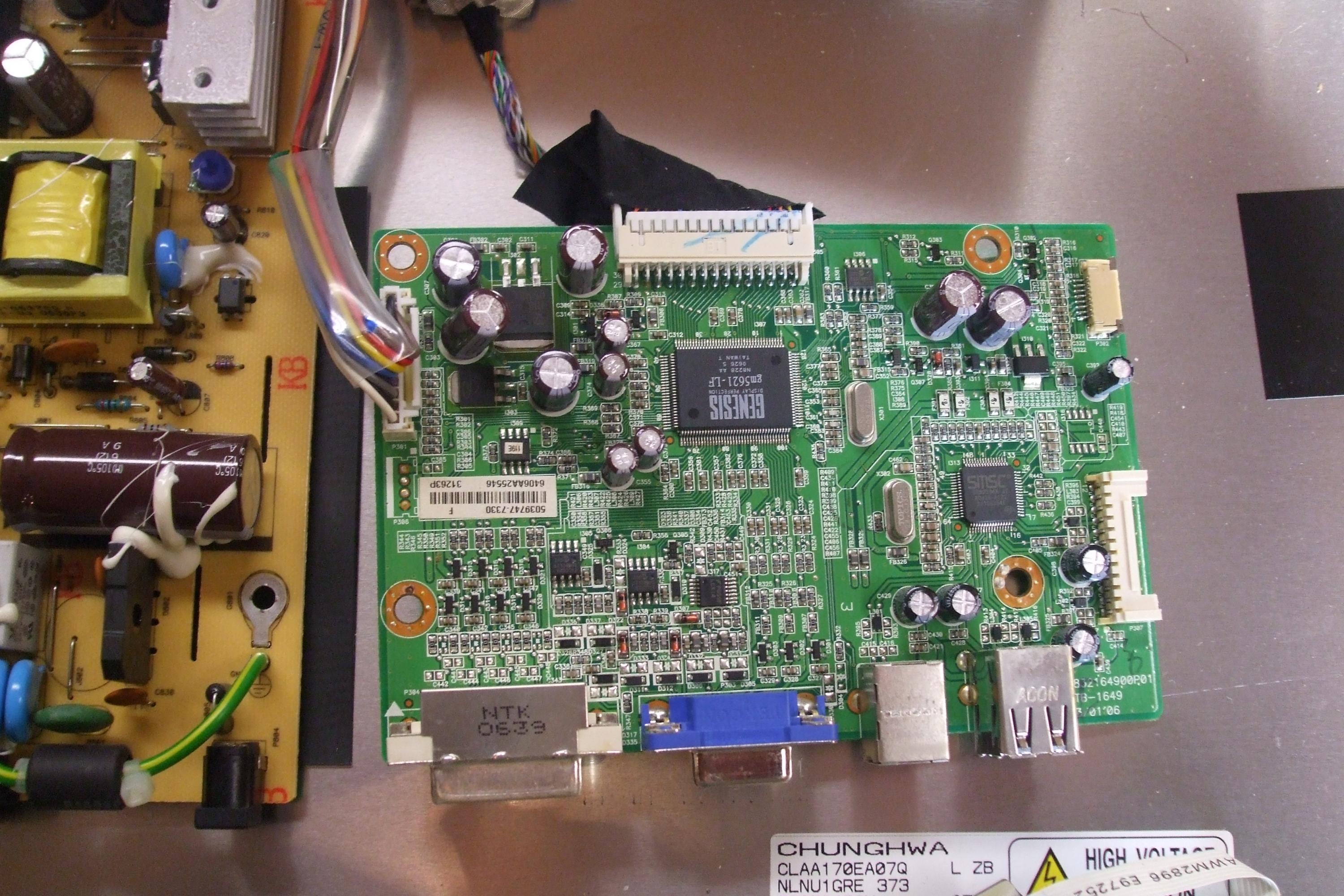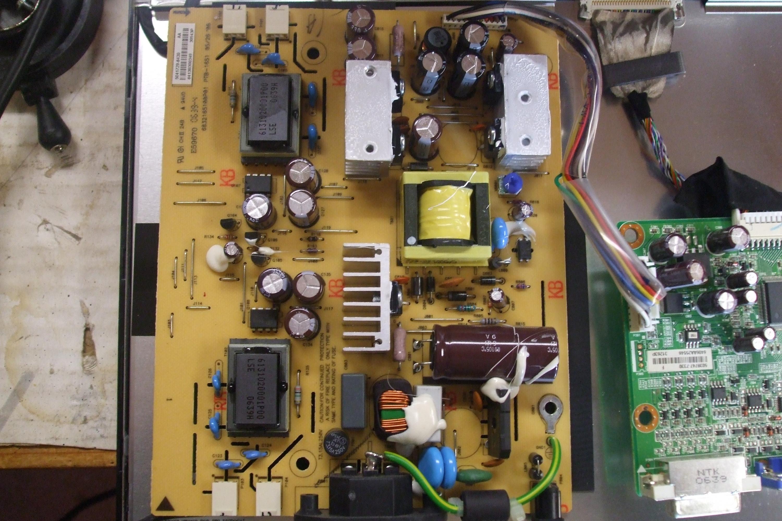 I got this monitor apart and I don't see any for sure bad caps. I've read all the threads on this monitor, but no one ever listed the pin voltage going to the logic board. When I first put AC power to the main boad, I get 2.45vdc at the two top pins, then the voltage starts falling, finally going to .o1 volts.