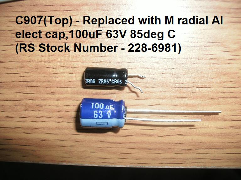 C922, C925, C924, C926, C929, C930, C932, C933 - With FK radial elec cap 1000uF 16V - RS Stock Number - 571-656