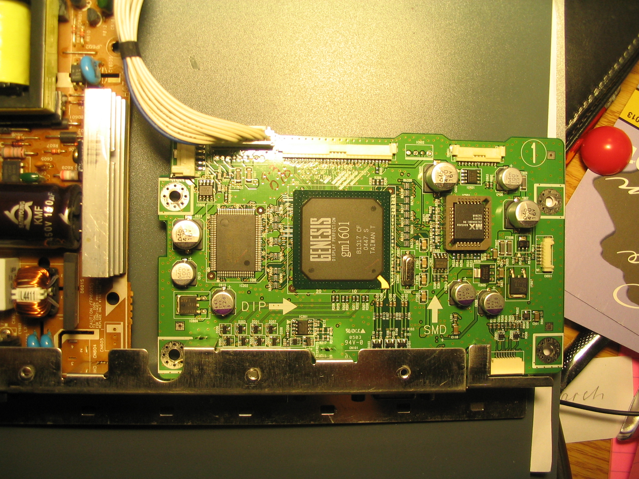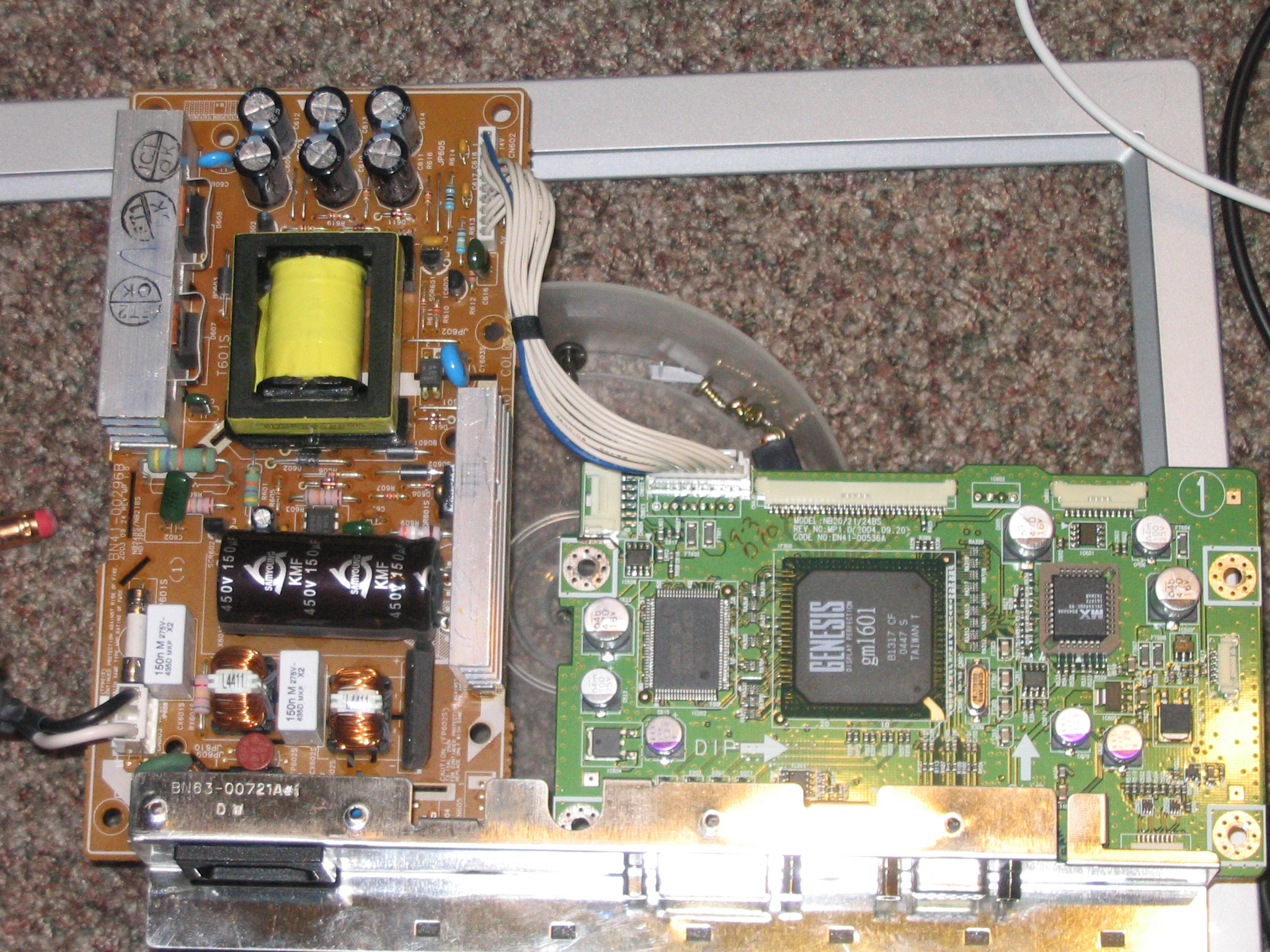 I just inherited a non-working 213T. First, I thought it will be relatively easy to diagnose, since I was sure the issue is in bad capacitors. I disassembled the monitor and found out that capacitors look good, not bulging at all.