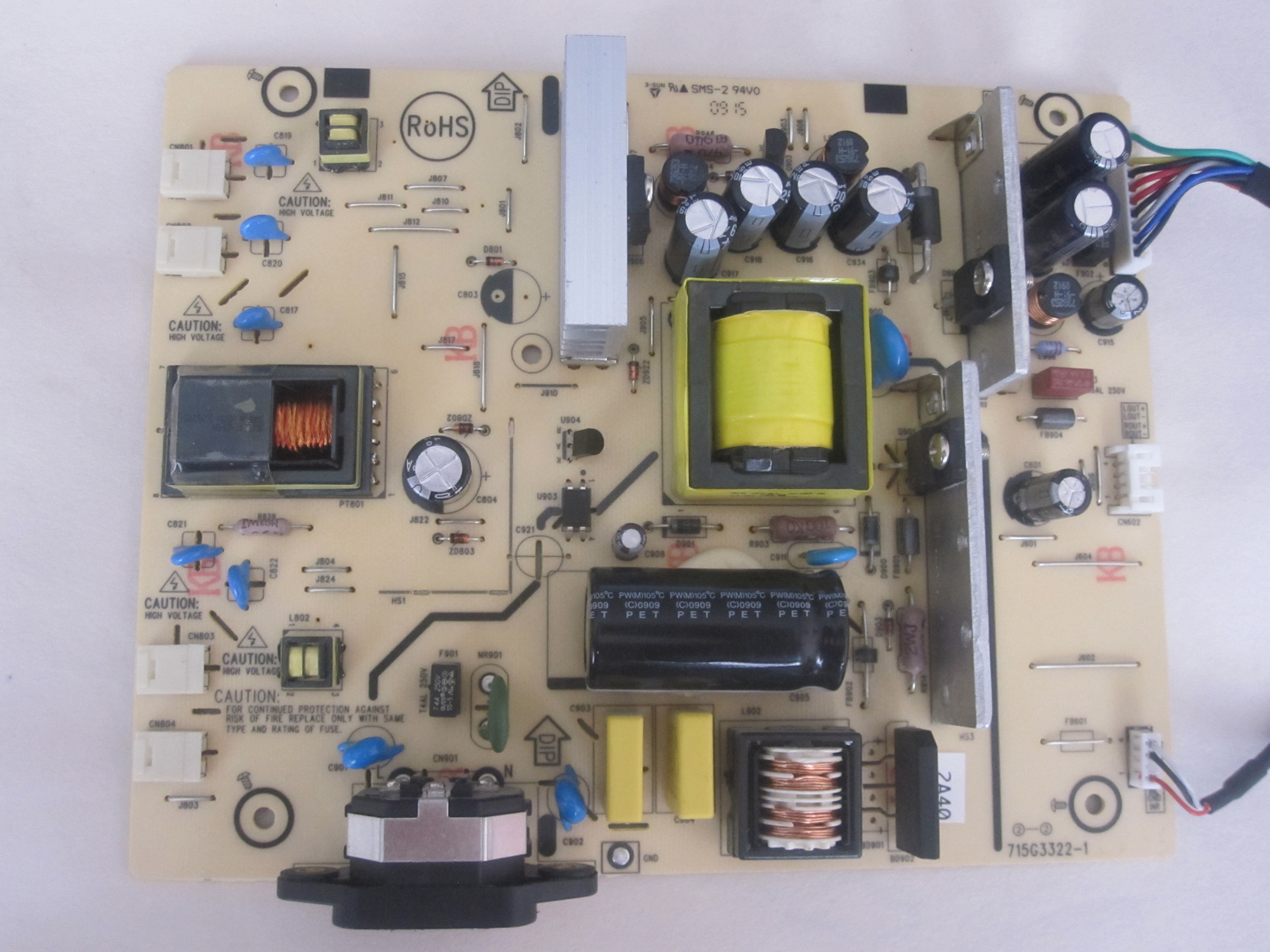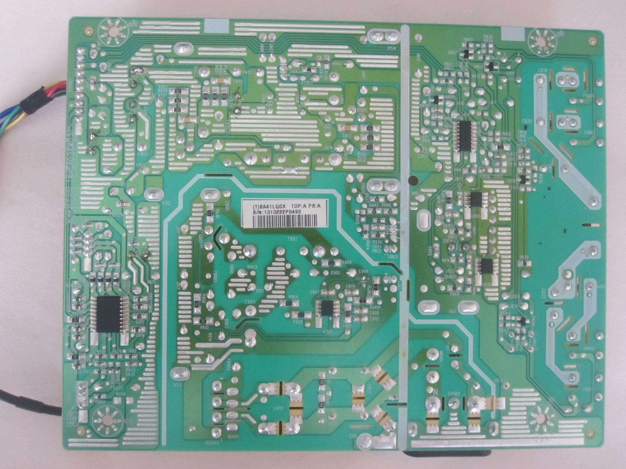 So far I've found that Q901 (P10NK70ZFP) is showing 3 - 102 ohms for a couple of seconds but only with black on pin 2 and red on pin 3. I'm not sure if that means it's bad or this is the way it's supposed to be. I've attached the datasheet for it, hopefully someone with more knowledge can let me know.