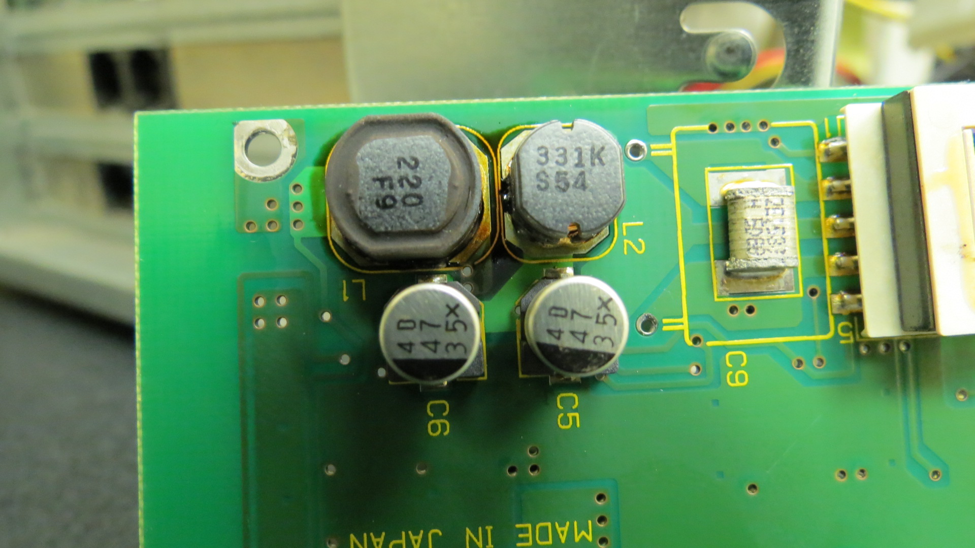 This component is on the opposite side of the board from the two inductors and two capacitors, as you'll see in the picture. The damage is showing through, so I may end up replacing these components as well.
