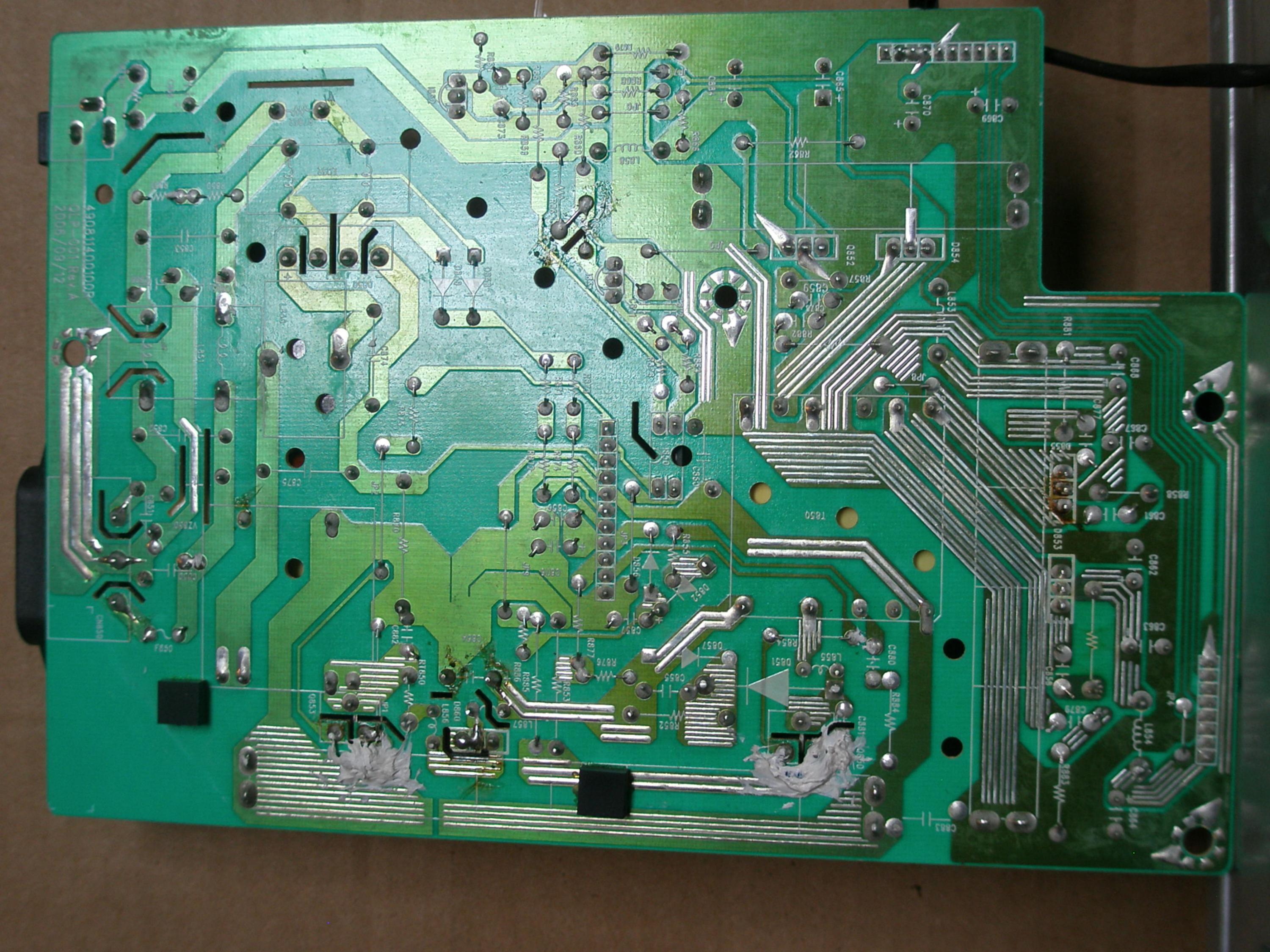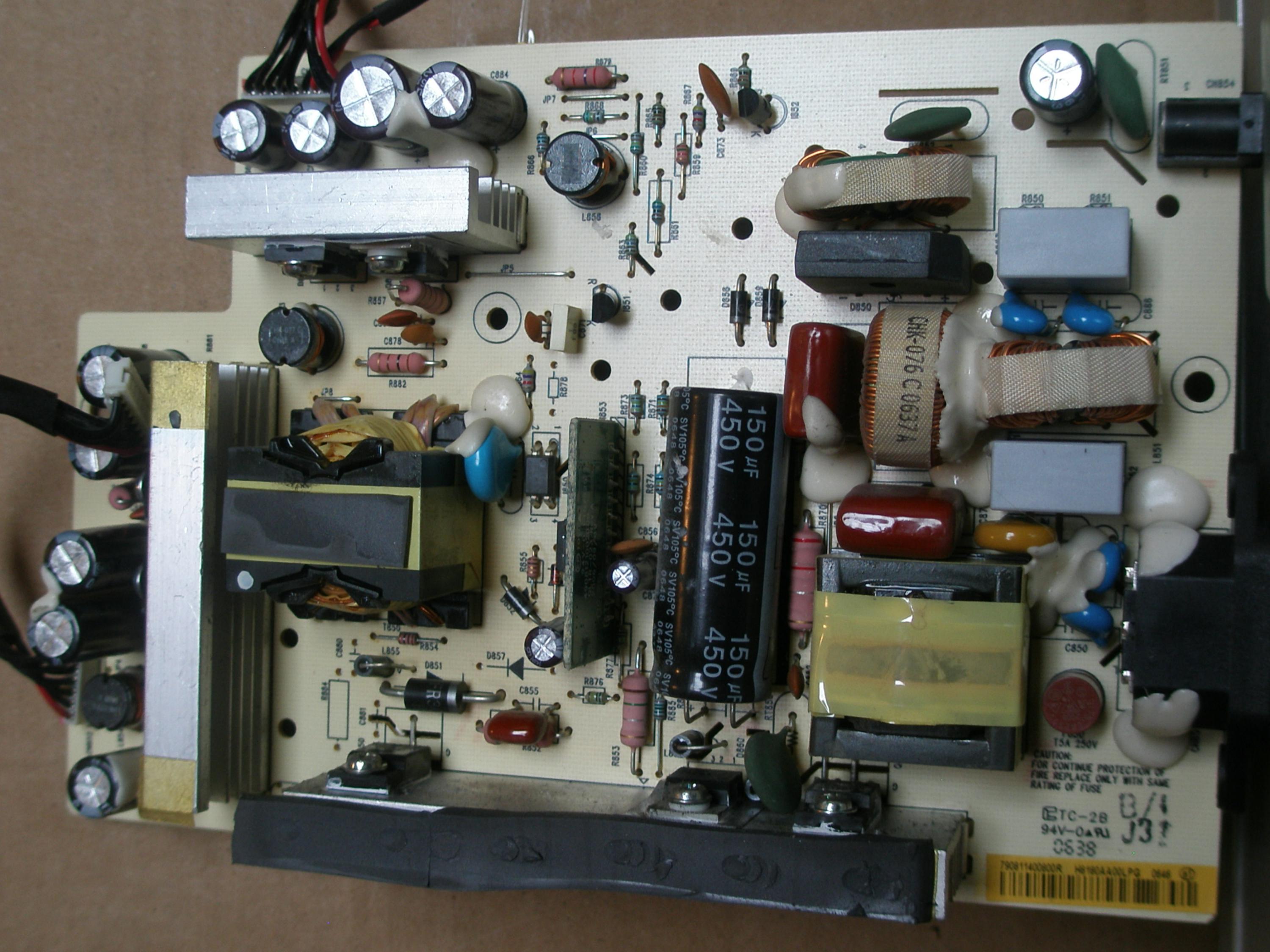 So I was measuring the voltages that are output from the power board to the signal board and after unplugging the power board, I accidentally shorted and discharged the 450 V capacitor (POP! DMM electrode brushed across the cap nodes). I'm inclined to think that this didn't damage anything, it just discharged, but... Could this damage things?