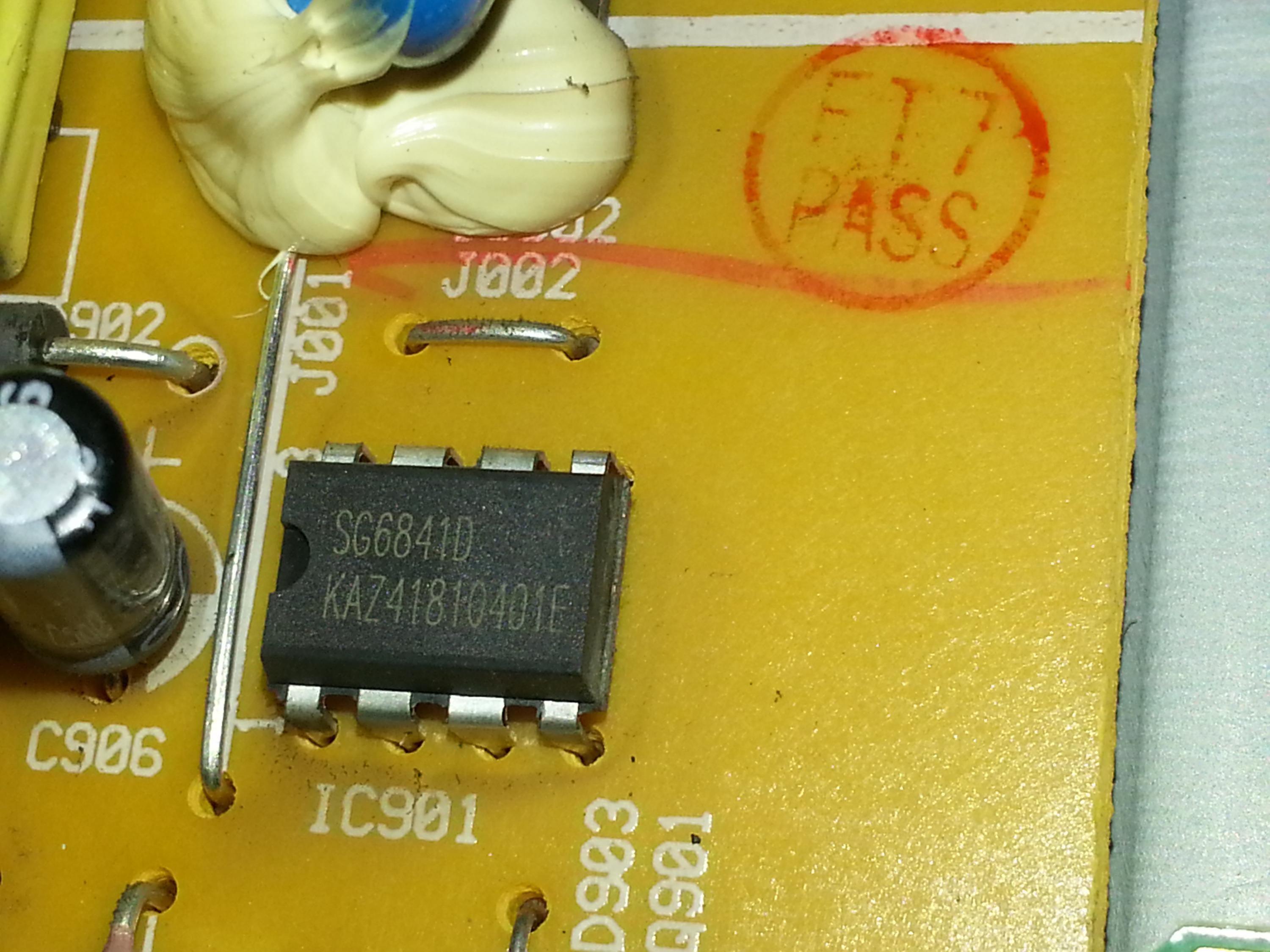 I am receiving variable DC readings on C906 and IC901 (1 to 7 pin) from 11 to 15 Volts. Also, I am hearing ticking component in primary circuit (guessing that IC901 is not able to start)