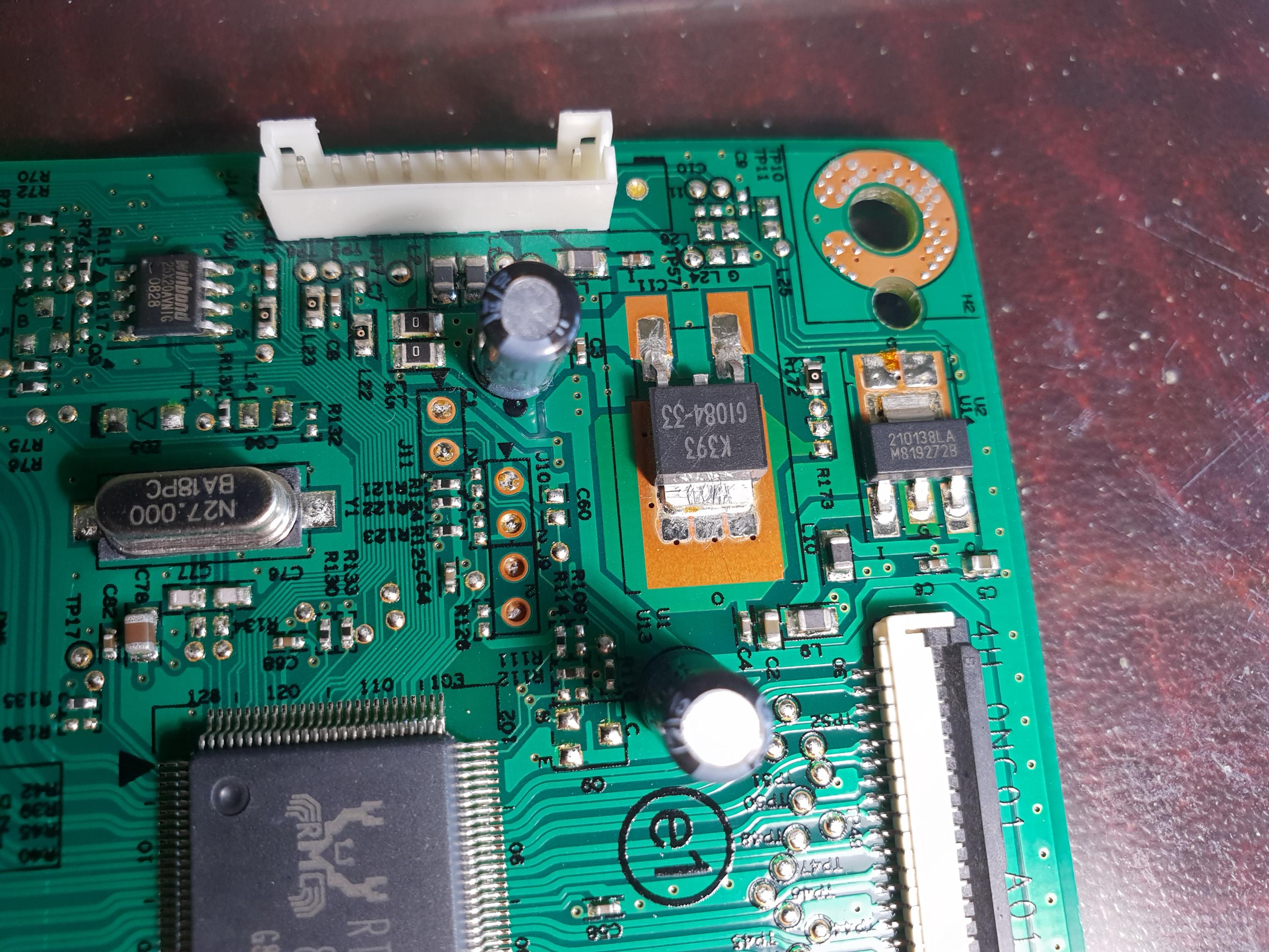 I'm facing the same issue with the Asus VW246H monitor. Power on works only every now and then. I followed the indications in this forum and the conclusion is that the voltage regulator (G1084-33) sometimes gives 3.3V sometimes does not hence I'm going to replace it with a similar chip easier to find on the market (AP1084-33) but...... I'm wondering if also the other power chip marked (see pict) 210138LA M819272B could be part of the power failure and so worth of replacing. Though, after extensive research I've not been able to identify this part.
