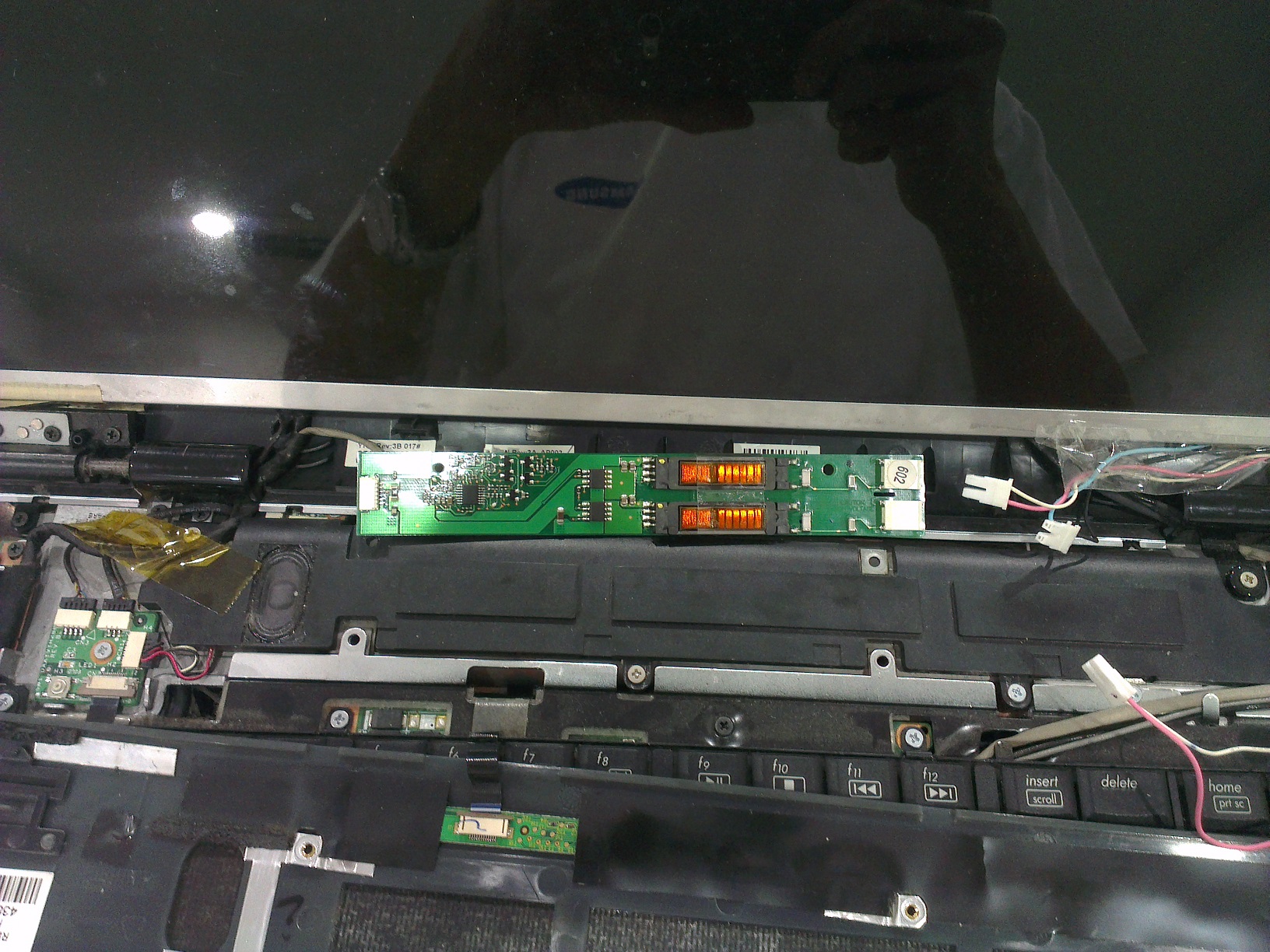The screen has 2 ccfl backlight, and one of the tube is causing shortage.