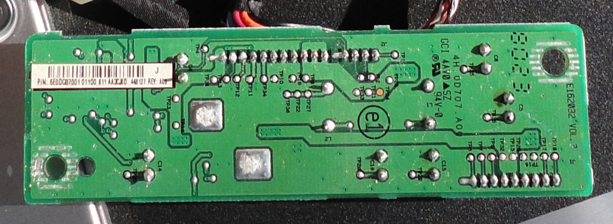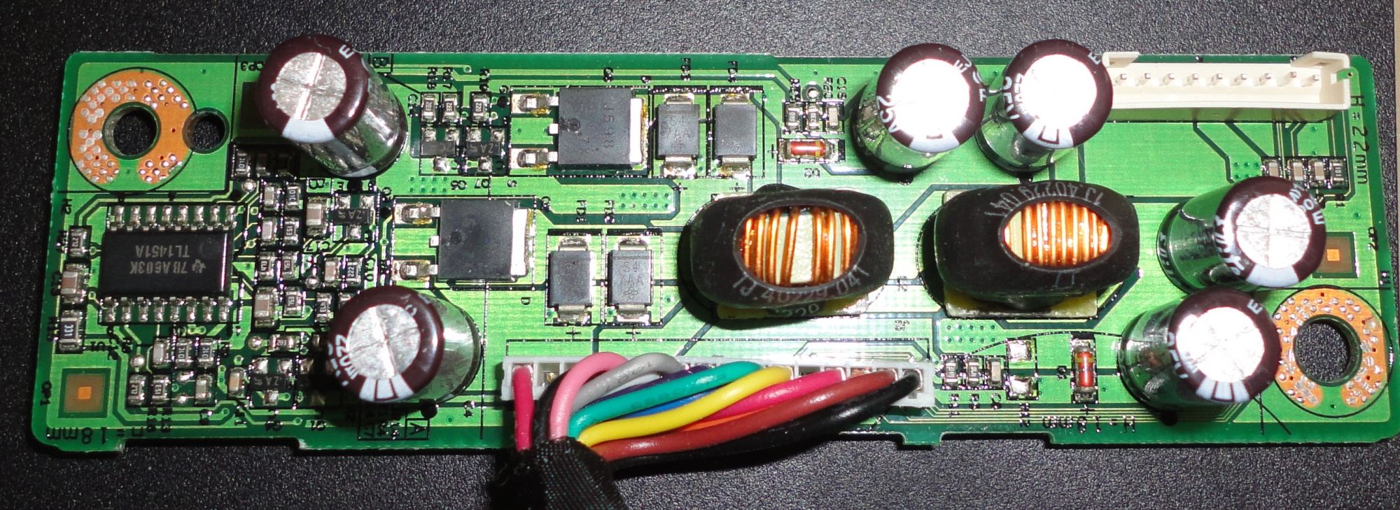 No no no wait... that is not main board, please stop dismounting all the things without a reason, budm, YOU and i suspect the T-con especially and main/scaler board, the little board contains for what i can see 1 or 2 switching dc-dc reg. so if you want to suspect power issue test this board's outputs and report, after test also the T-con testpoints especially GMAVDD2, VGHC1, GAVDD1, GMAVDD1, VGH1, XVCC1, GAV1, GAVCC1, DAVDD1, V33, 5V1, VcomD, after search the web for the keywords -one of previous and the model of the panel- for example "(GAVDD1 OR GMAVDD1) LTM240T1-V2" so you can find places where someone, for example other users, post their voltages, bye!