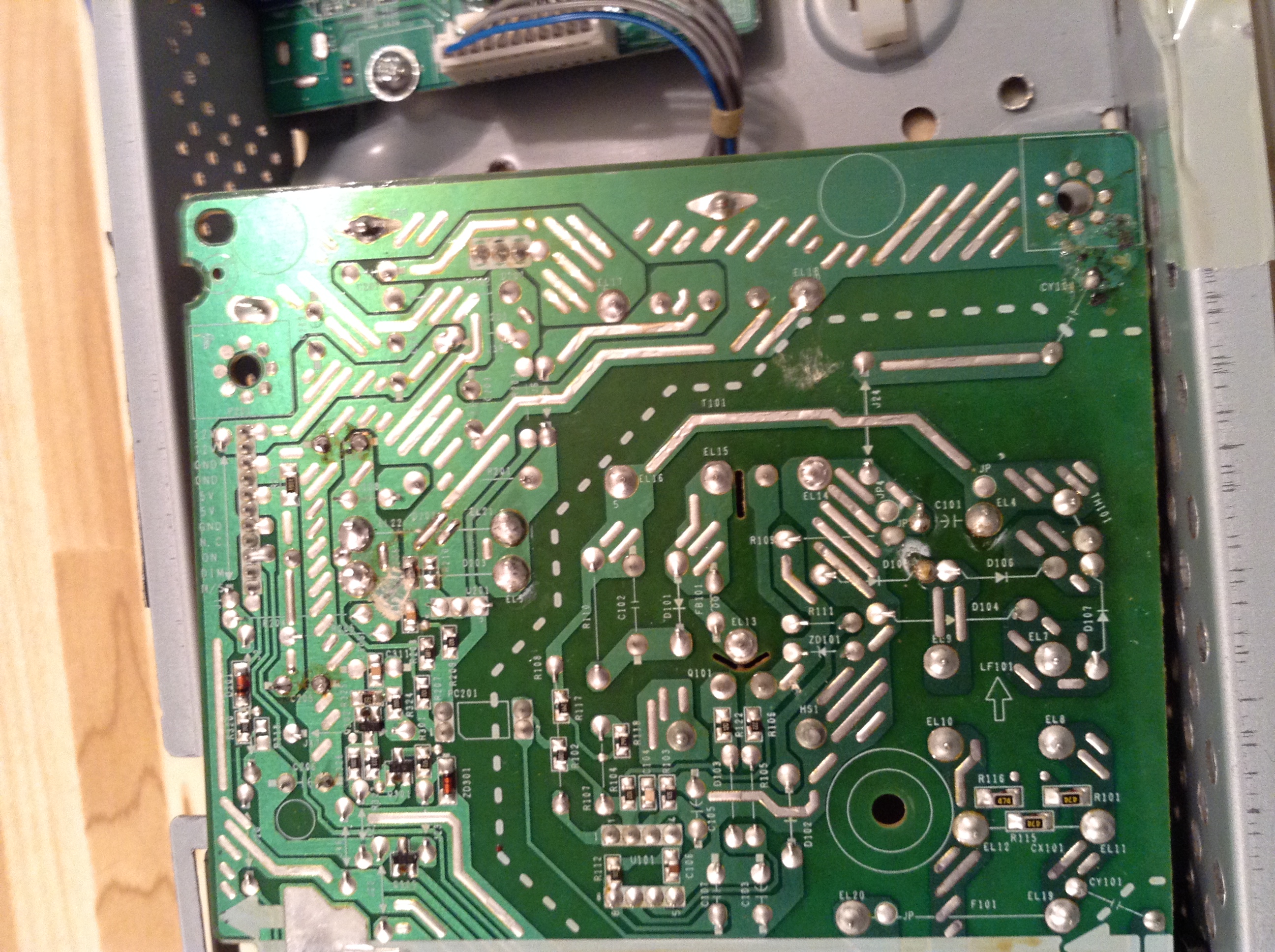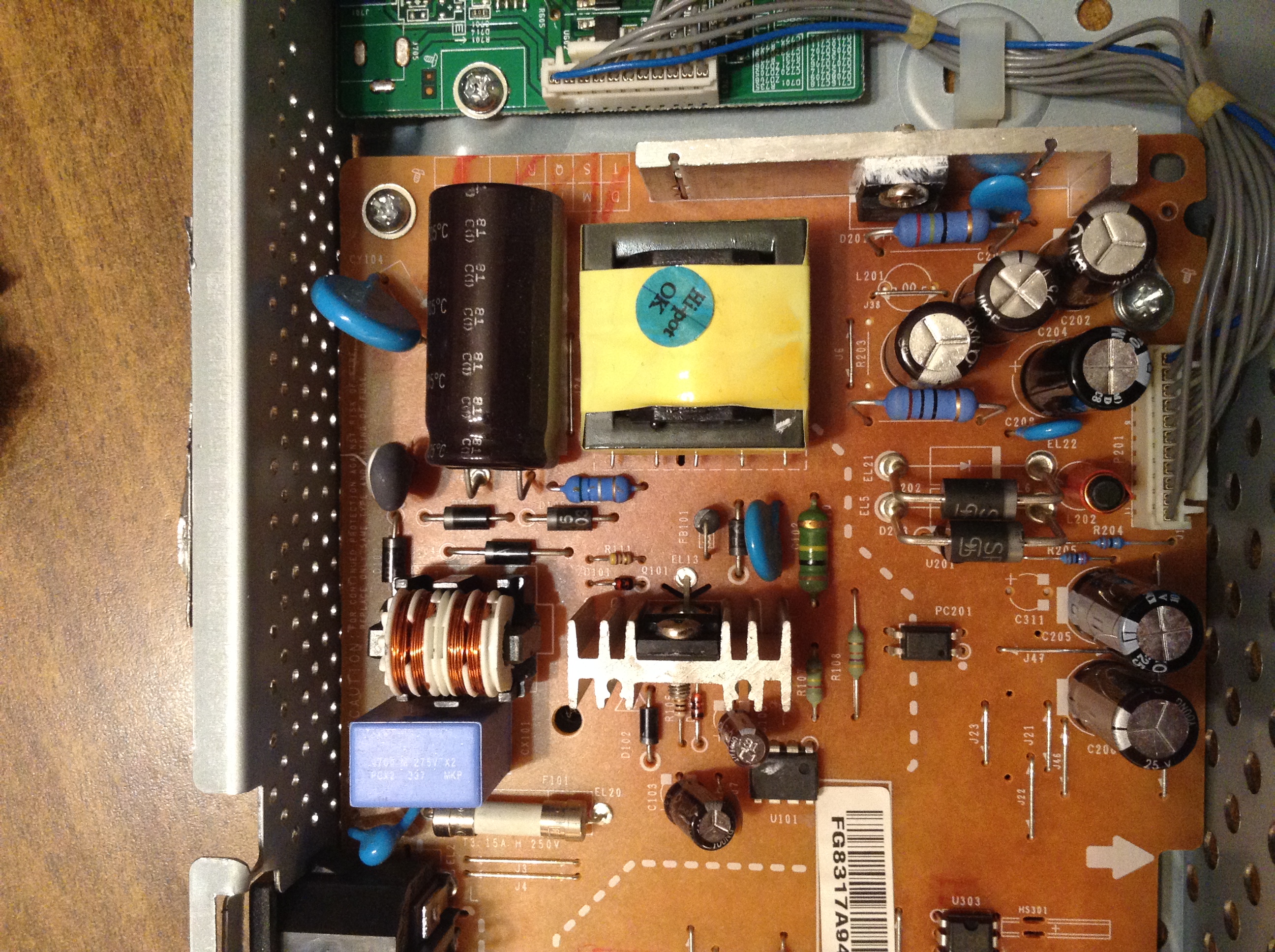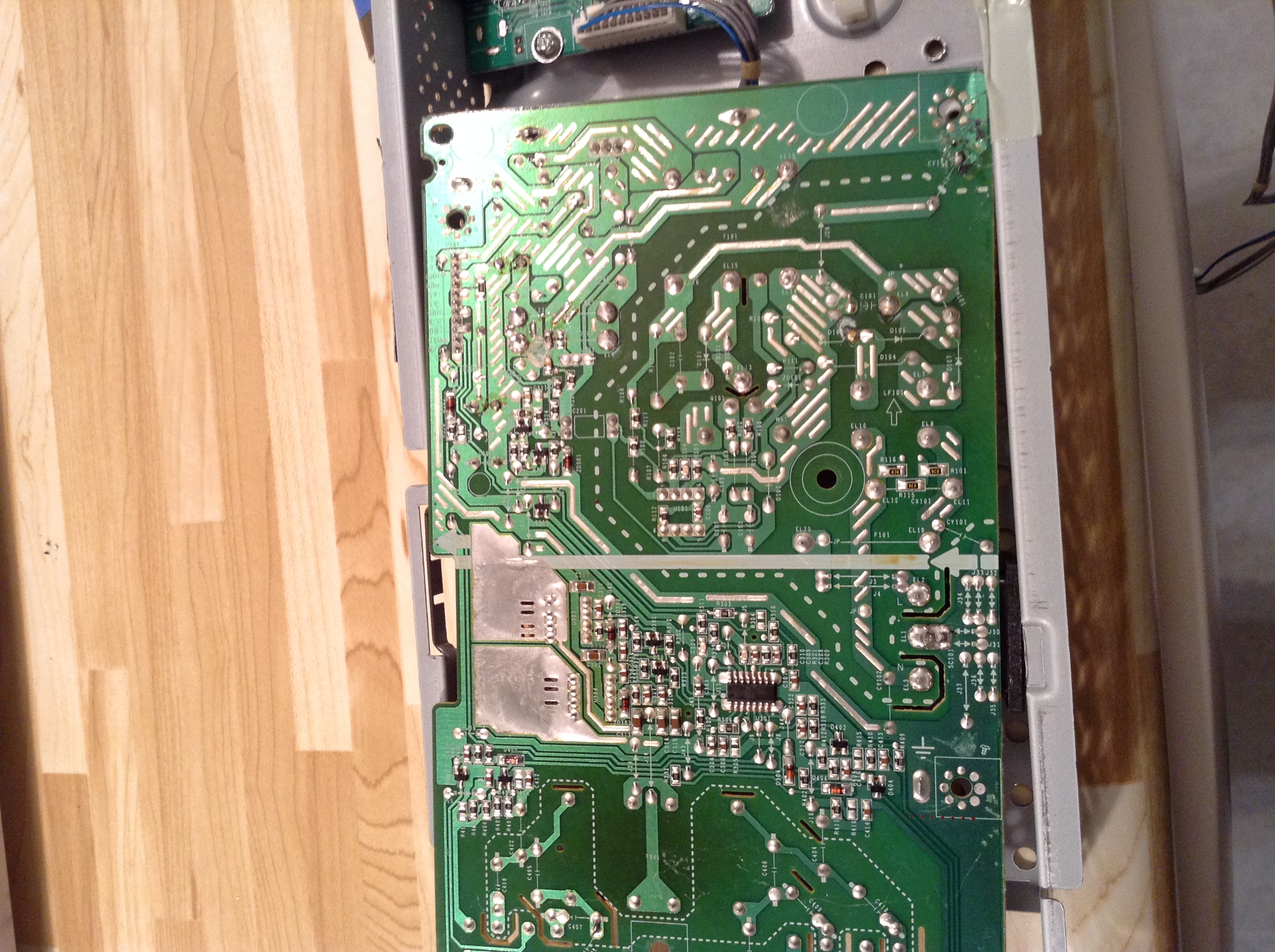 So I've had this monitor for probably a decade now, and it's finally starting to fail. Began with a little sporadic flickering, then eventually started going black (power LED stays blue, can still see image on screen with flashlight). A power on/off fixes it for a bit, but then it happens again. Once it got to the point I was dealing with this every few minutes, I opened it up and just replaced all the caps (minus the big one) on the power board with new Panasonic ones. All the old caps tested fine on an ESR meter, and this worked for 5 days. But the screen just went black again today, so...