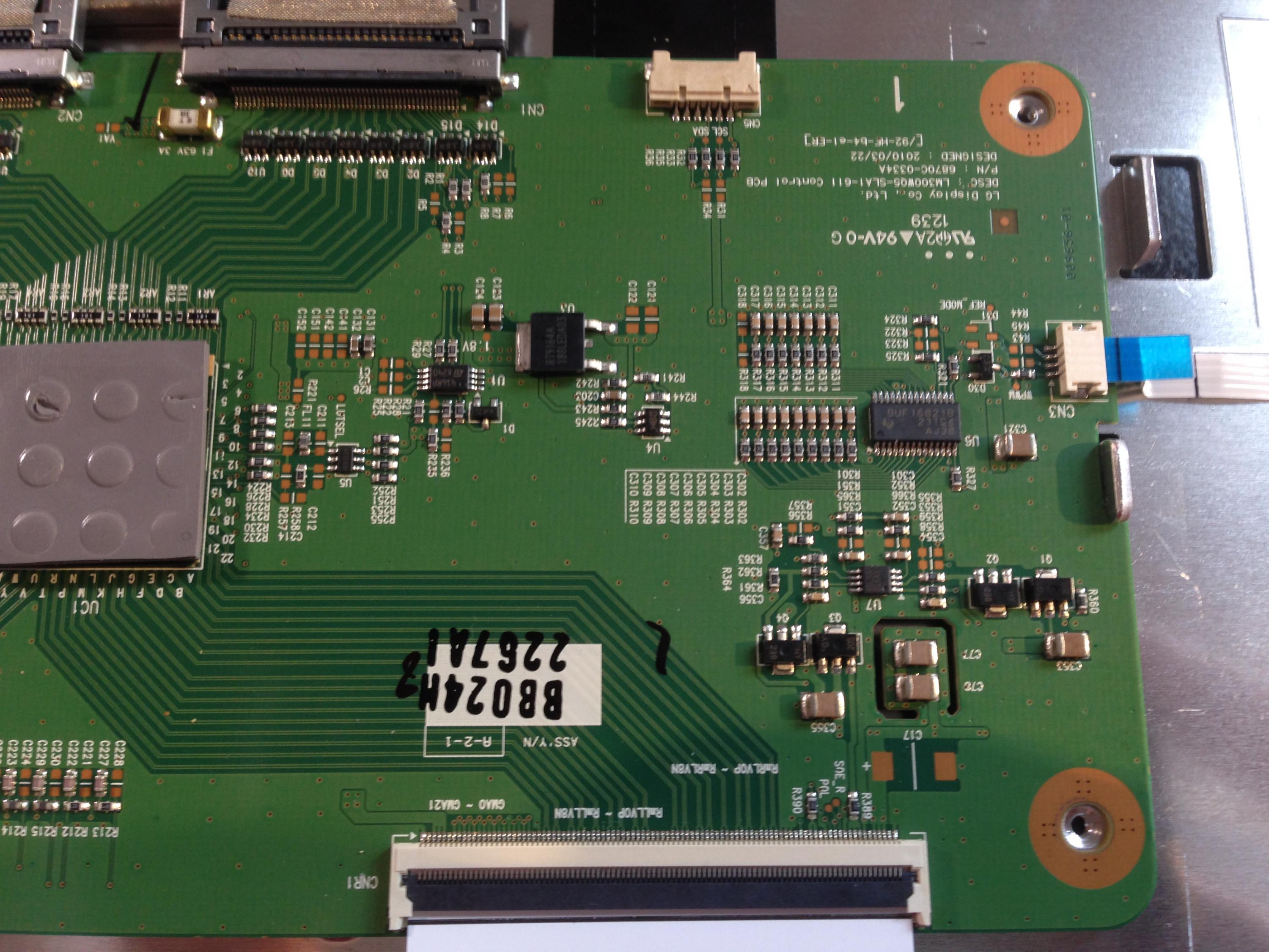 Flex cables from tab bonds board to T-Con looks fine. I will mic out the LVDS connections next. As reminder, I tried new T-Con and main boards.