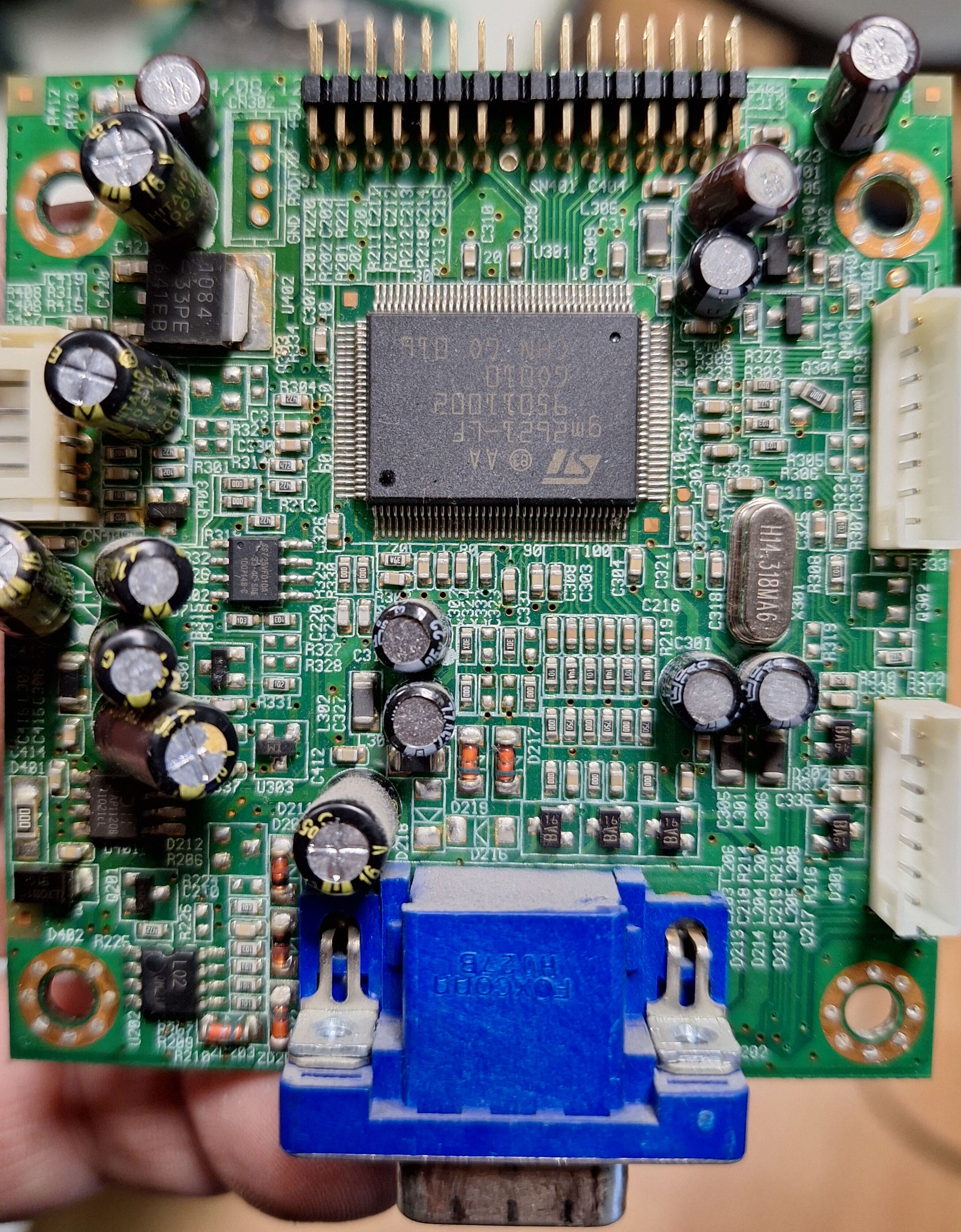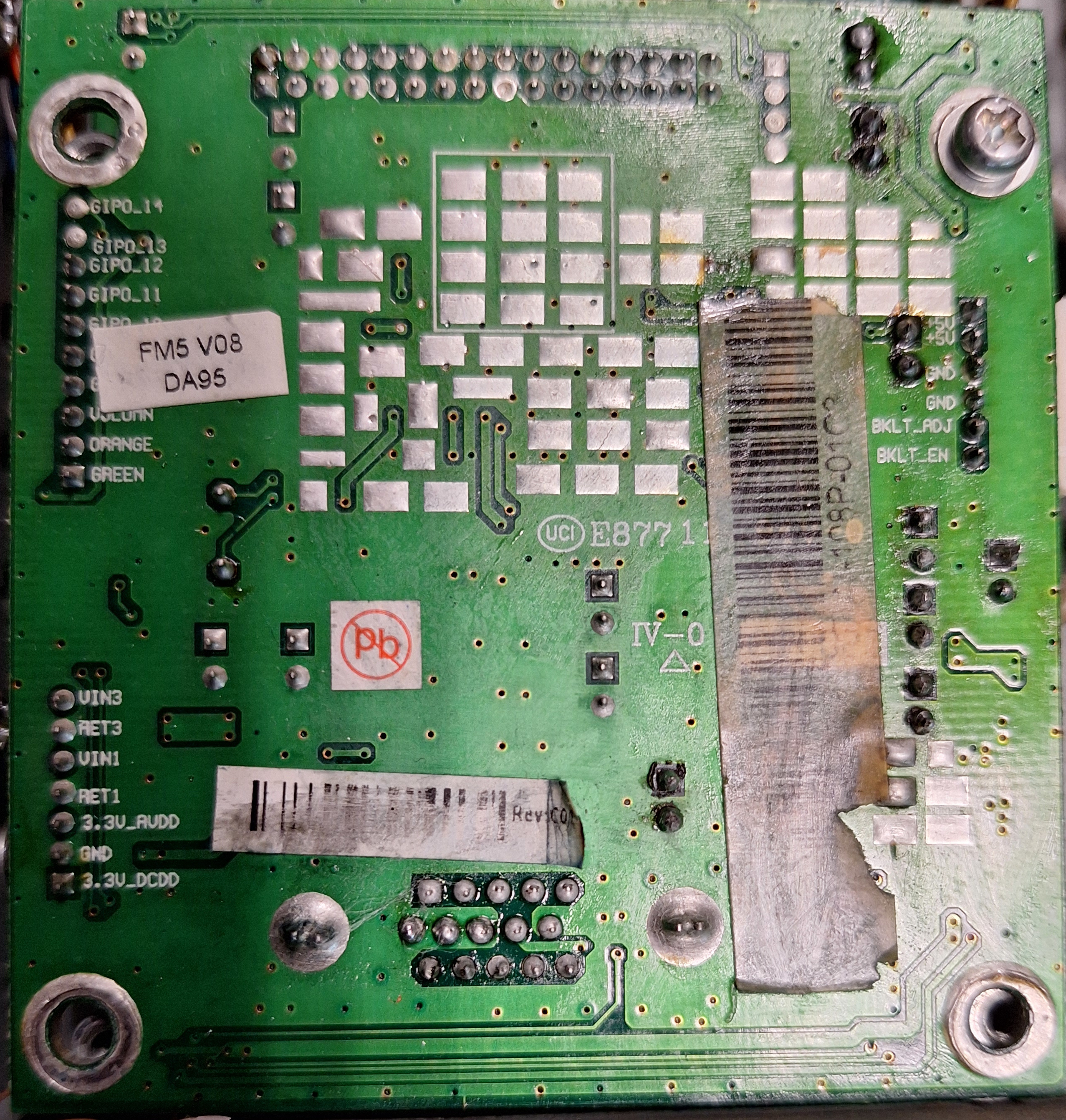 There was a trail of dried light brown liquid on the board that the display connects to, as if a capacitor had leaked, but I couldn't find one. I cleaned the circuit board and resoldered the legs where this liquid was, but to no avail.