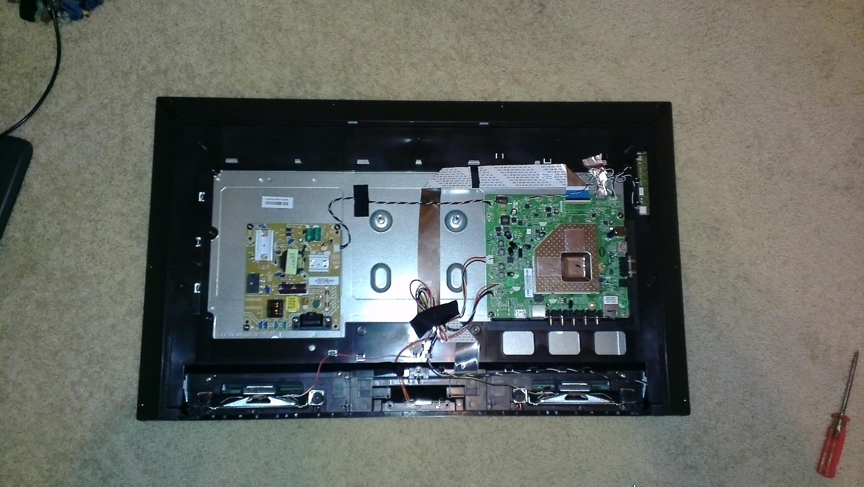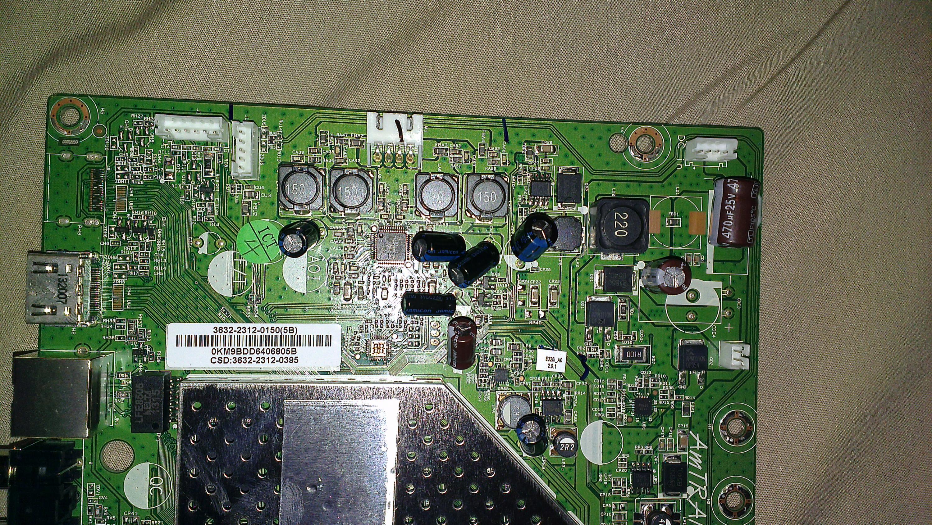 Please bare with me. I'm very much a novice at this kind of thing. Only swapped out some leaky caps on some lcd monitors in the past. Bought this tv cheap. Figured it would be pretty easy to diagnose. TV powers on, but no visible display. Using the flashlight trick I can see the Vizio setup menu. Don't have a DMM yet, but it is on the way. I'm curious if someone could point me in the right directions on how to measure the voltages both coming from the power board and the voltages on the main board. I somewhat understand what to look for, but the lack of pins coming from the power has me unsure of what voltage I should expect to read and what I should look for on the main board. I'm assuming that my problem is on the main board (maybe voltage regulator or something). Just a guess without a meter though. Any help is greatly appreciated. Full model number is Vizio E320i-a0.
