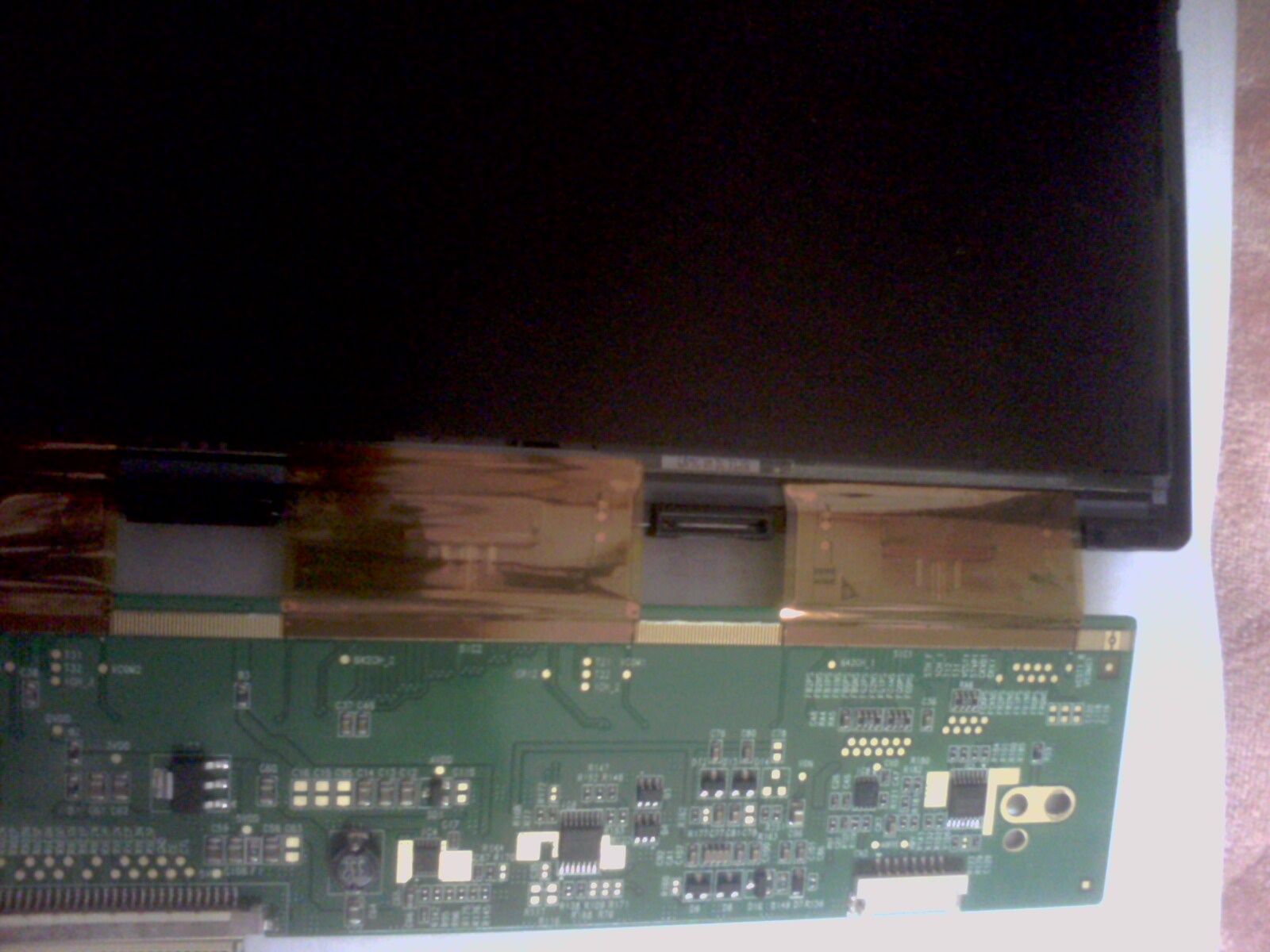 Attached are sample shots of one of my LCD screen with a disconnection of the data cable between the logic board and the LCD screen.