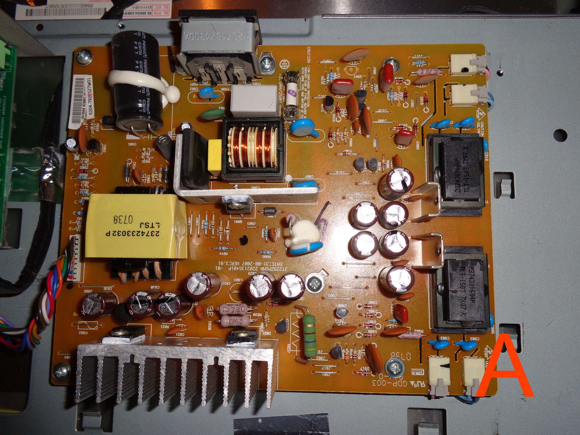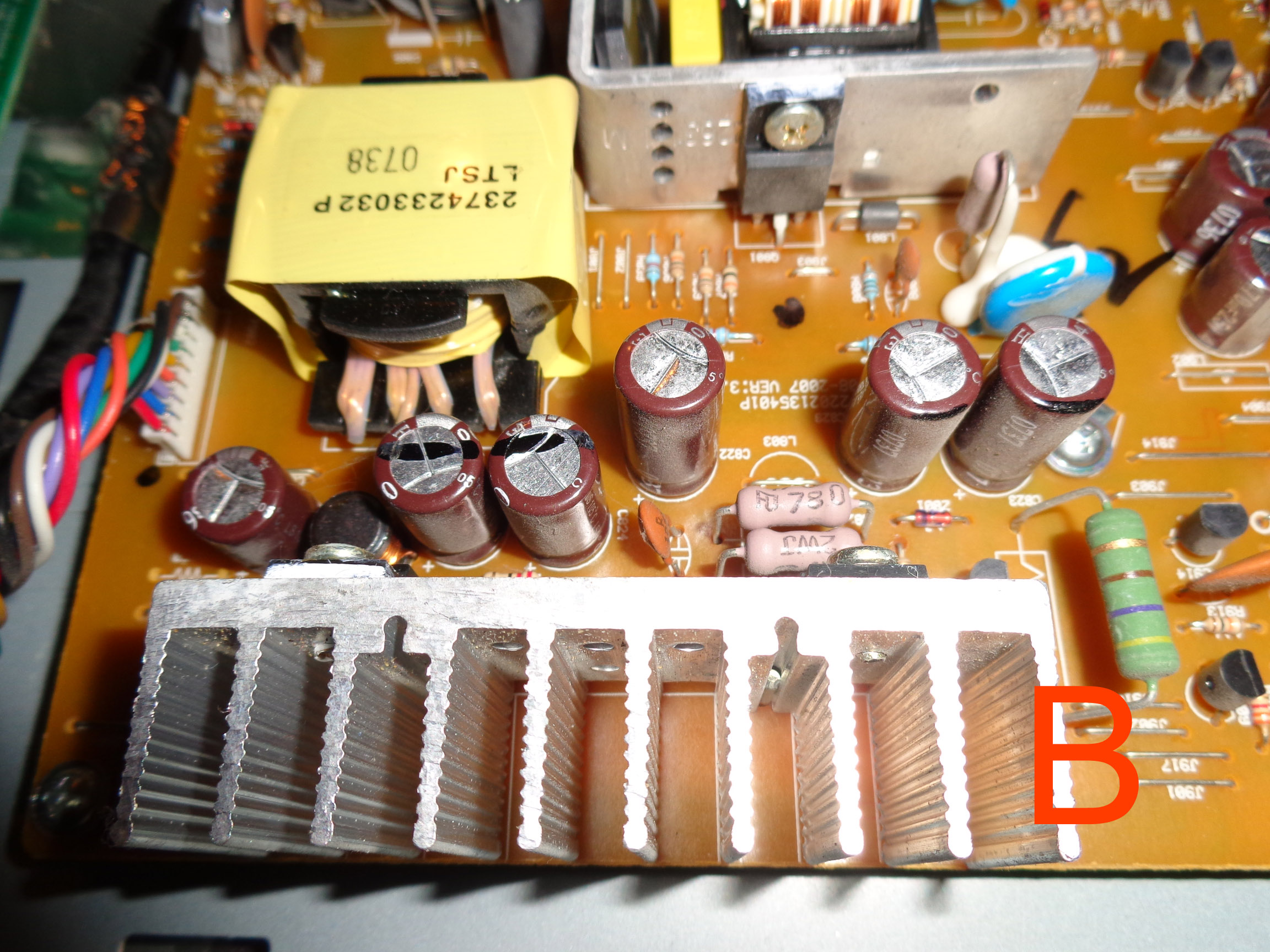 We have it open already, and I'm not an expert to tell if any of the caps are swollen, so I included pictures A,B, and C. Are any of these caps swollen, will replacing these fix the problem?