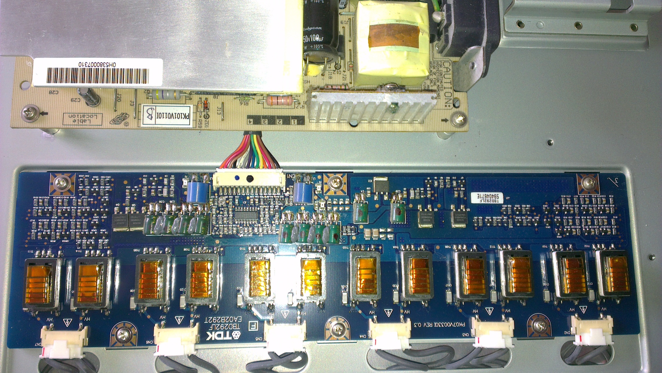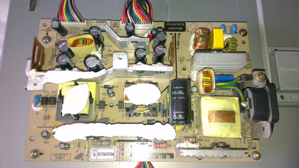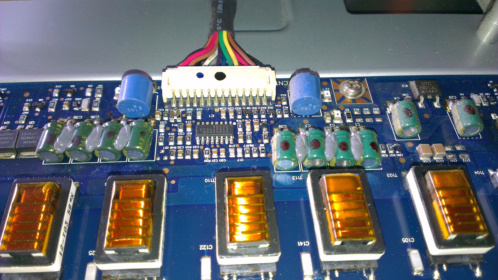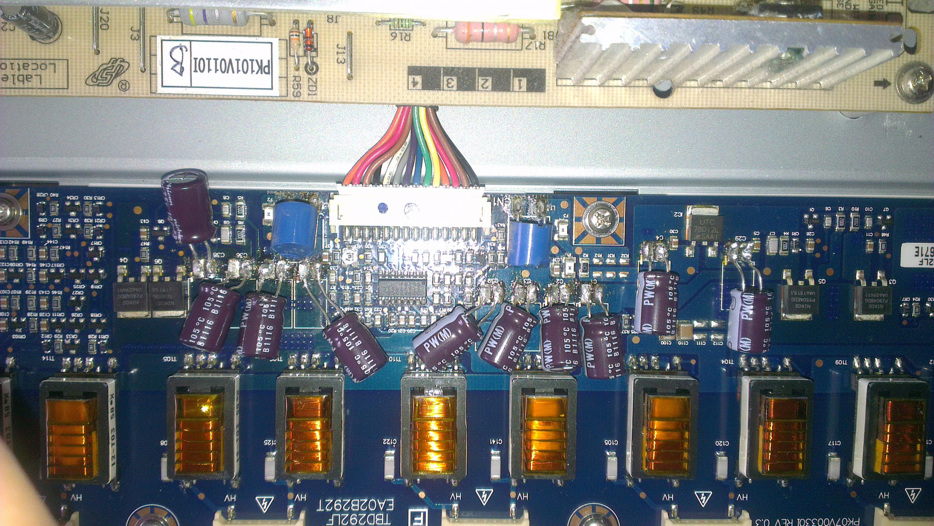 The 4 caps on the one side of the inverter are starting to go. If you look close you will notice that they are a little darker green.