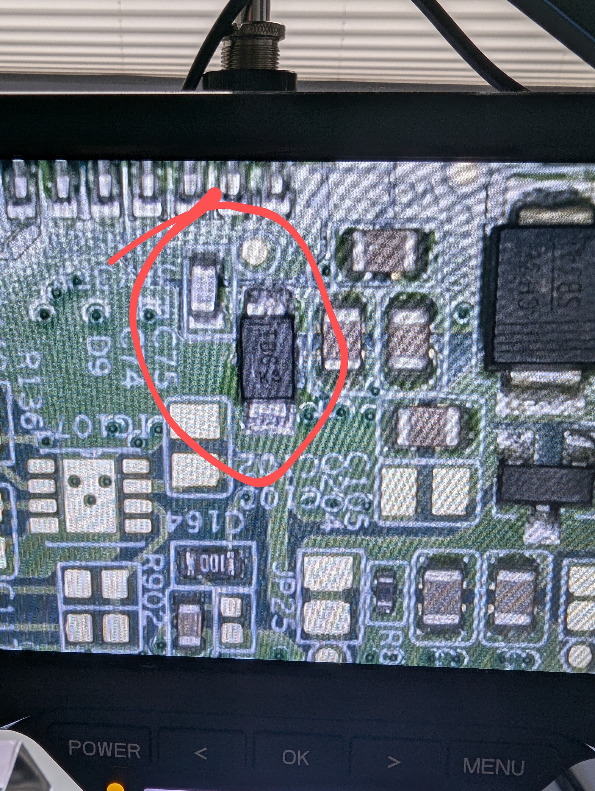 I hope i don't get on anyones nerves but i found shorted fuse....dunno why i missed this one. I replaced it but now the backlight stopped working. Maybe i got a chain reaction or something else is the problem. My thermal cam shows two chips getting around 60c when i plug the power supply in. On my first pic it is a mosfet i i am not wrong and on the second pic it is the chip next to the fuse. Any ideas what this is? D9 could mean diode but normaly they don't die but protect the circuit If i'm not wrong.