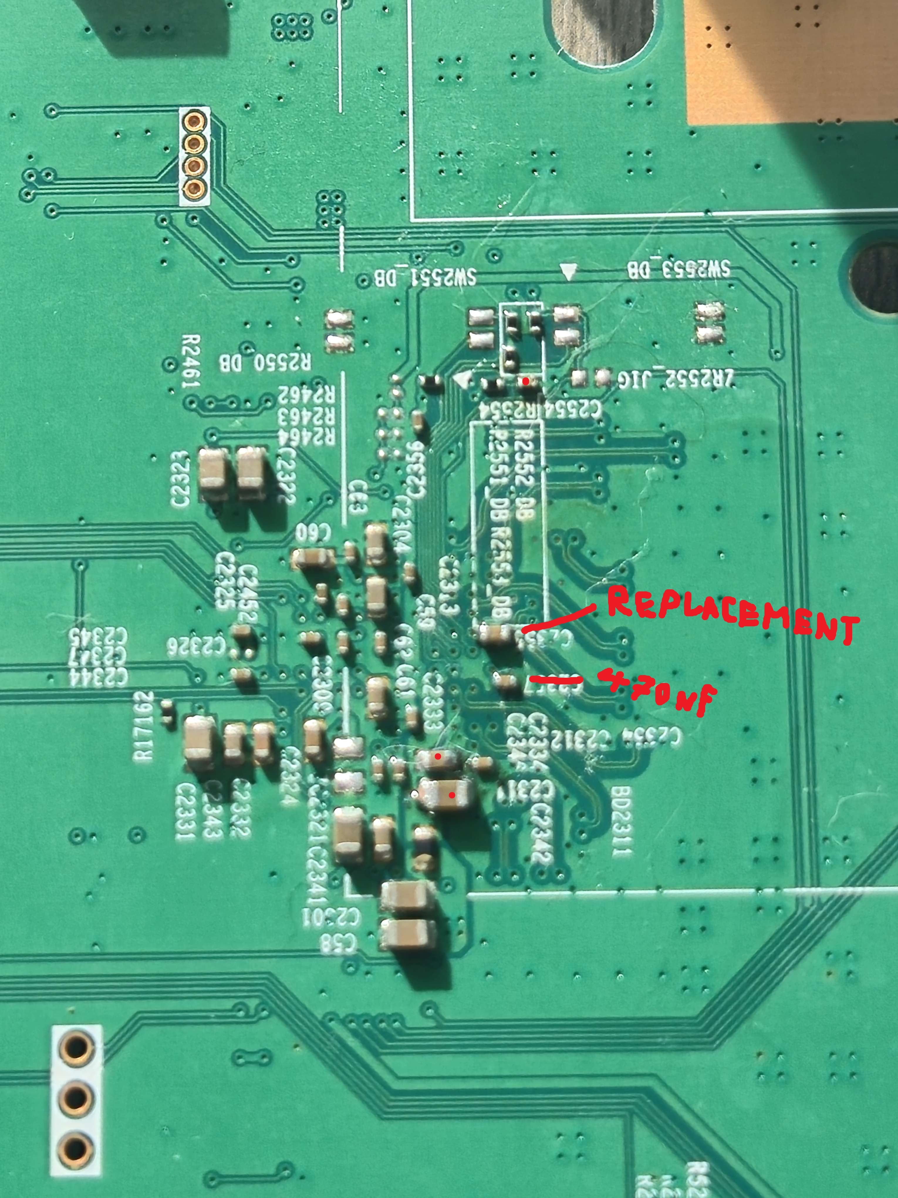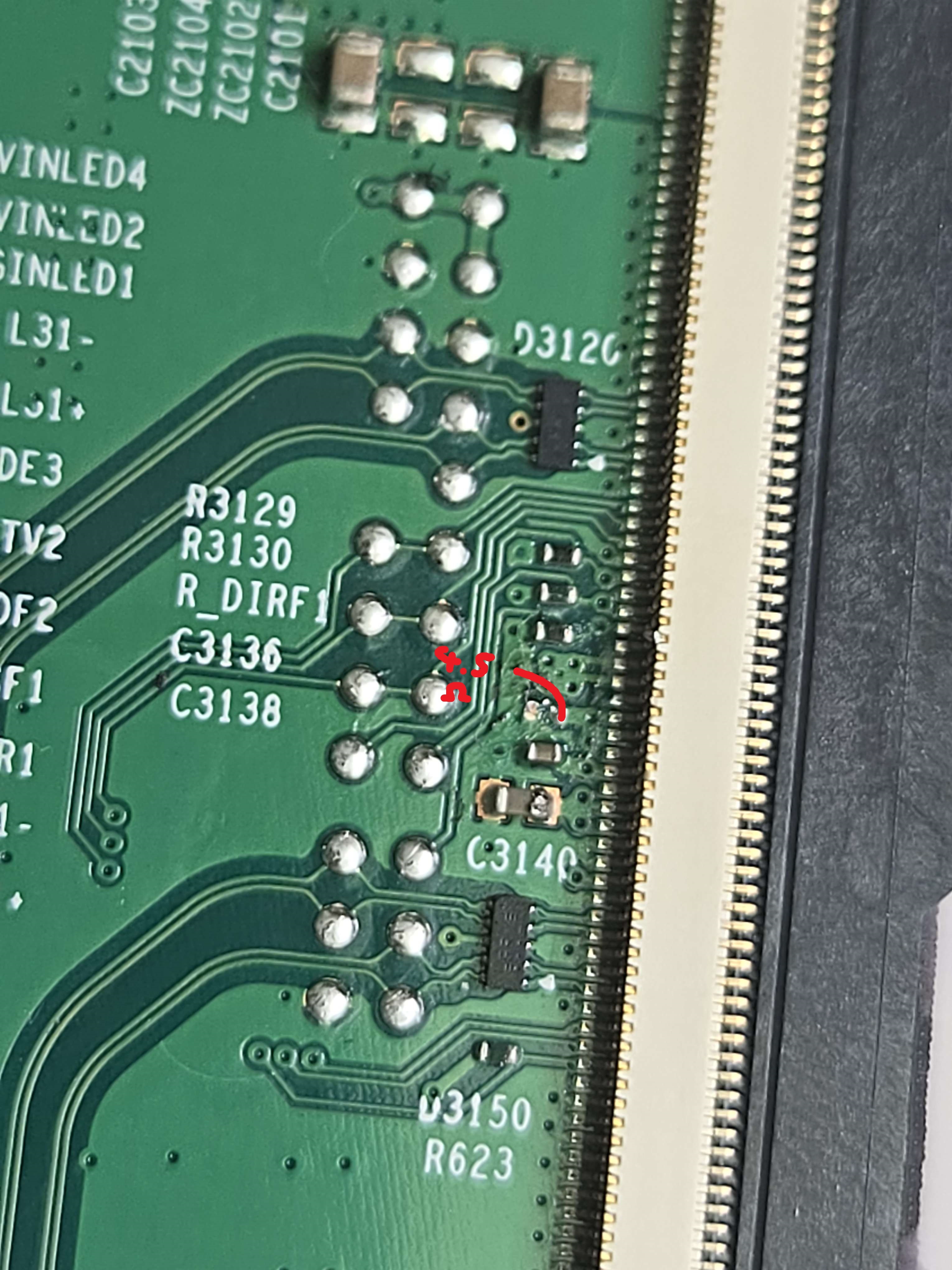 I'm thinking that the backside being messed up caused one of the LEDs to die. I was hoping that blocking that partially shorted signal would allow the rest of them to come on but that does not seem to be the case. Is this a completely lost cause or is there something I can try? I'm thinking one of the possibilities is that the replacement cap I put on is not the right value. Also maybe more lines could be blocked off on the cable? I've tested with a different cable as well. Also the actual backlight itself is not accessible unfortunately.