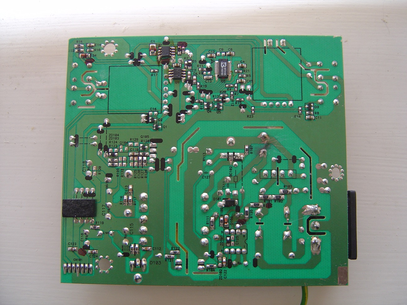 D104 tested ok too out of circuit. I haven't changed the caps down that area yet, as when I tested for voltage on the downstream side of the transformer, I didn't see any voltage on any of it's 5 pins there.