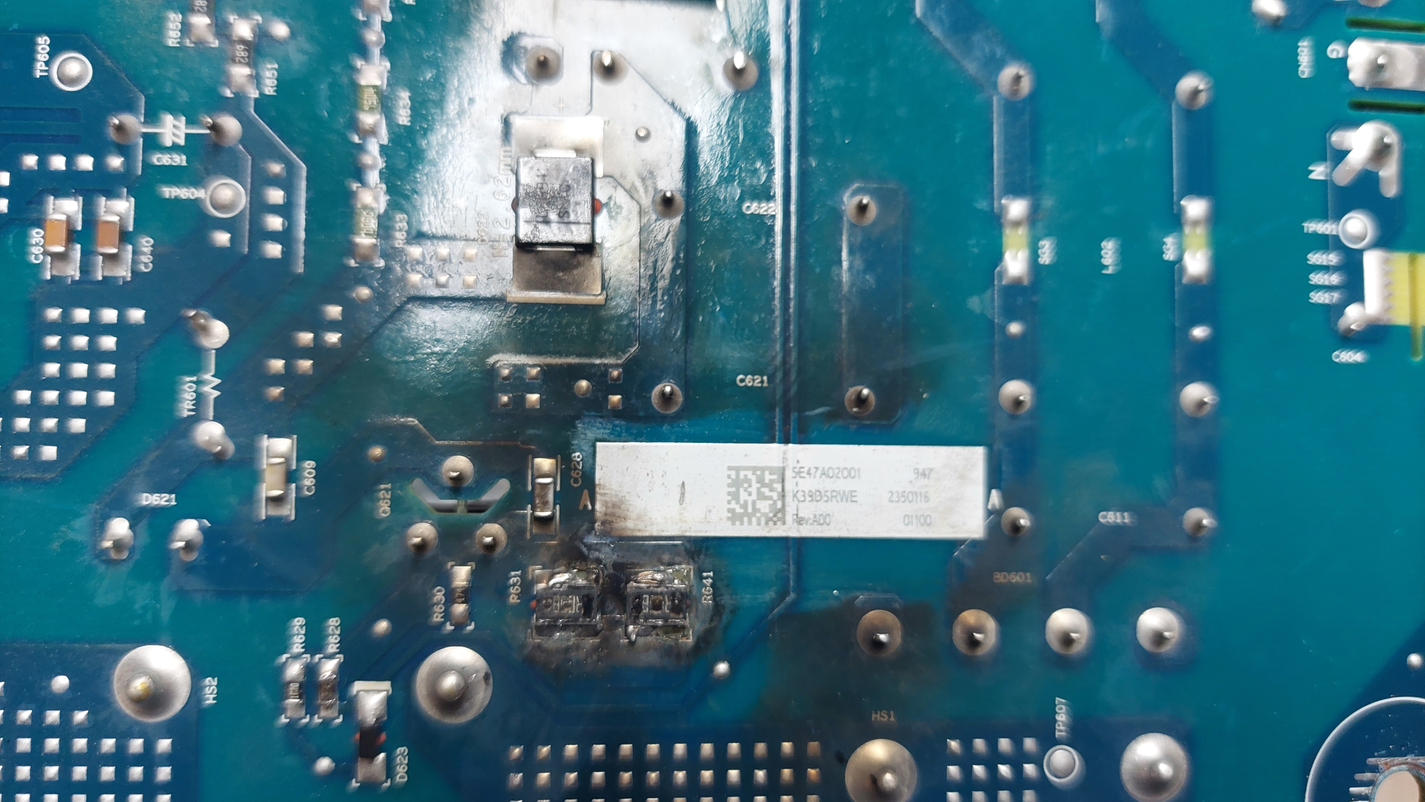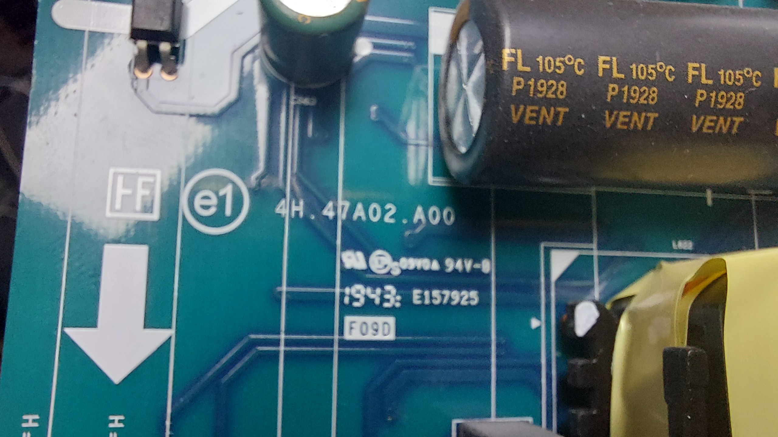 The power supply board for my Dell U3419W monitor is faulty. The Mosfet Q621 (60R160P6) has burned out (shortcut), but the problem is that other components have also burned out, and I don't know their part numbers. I haven't been able to find a schematic or photos of the board to identify them (the part number is 4H.47A02.A00).