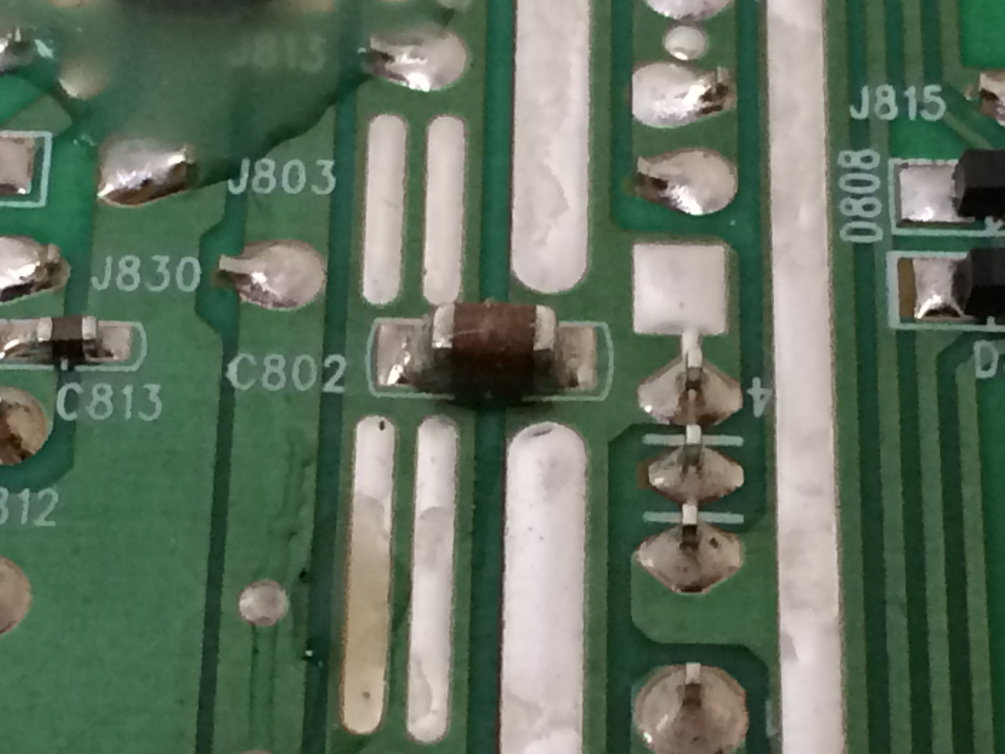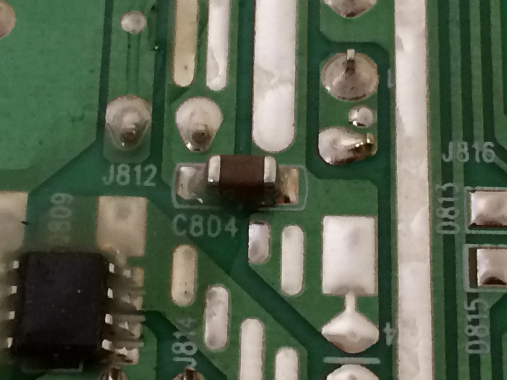 I have no spare ccfl's to test with. I saw a post making a test bulb with a cfl bulb. I have some at home that I need to accidentally “break” so I can make a couple. Most fixes I found include replacing c806, I do not have anything in that spot. While looking for c806 I noticed that c802 feels soft and looks round while the rest are rectangular and solid. I have a pic, it's with the company Iphone so I can't get in to close but I think it shows pretty good what I see. My gut is telling me that is probably what is wrong with the monitor. Is there an easy way to check?