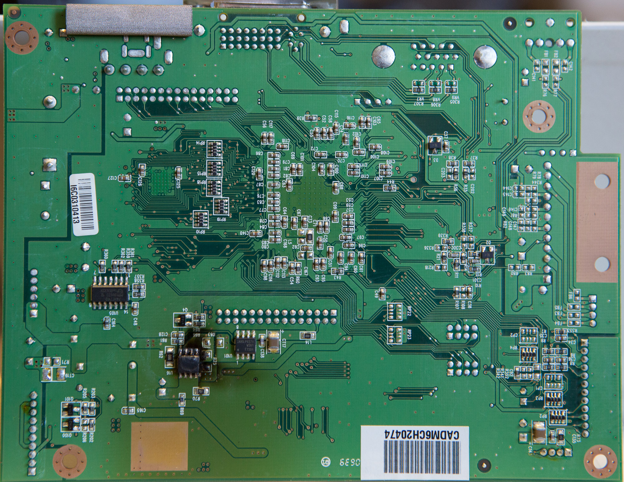 I do not currently own an ESR meter but would be open to buying one. The caps on the top of the board seem to have some kind of plastic attachment on the bottom so I don't think they're bulging though they look like they are in the photo. The power into this board is 12V from the brick and this distributes power to the other components. One smaller capacitor on the board is a Taicon, all the rest don't seem to have a brand marked but all look consistent with each other. High-res images attached.