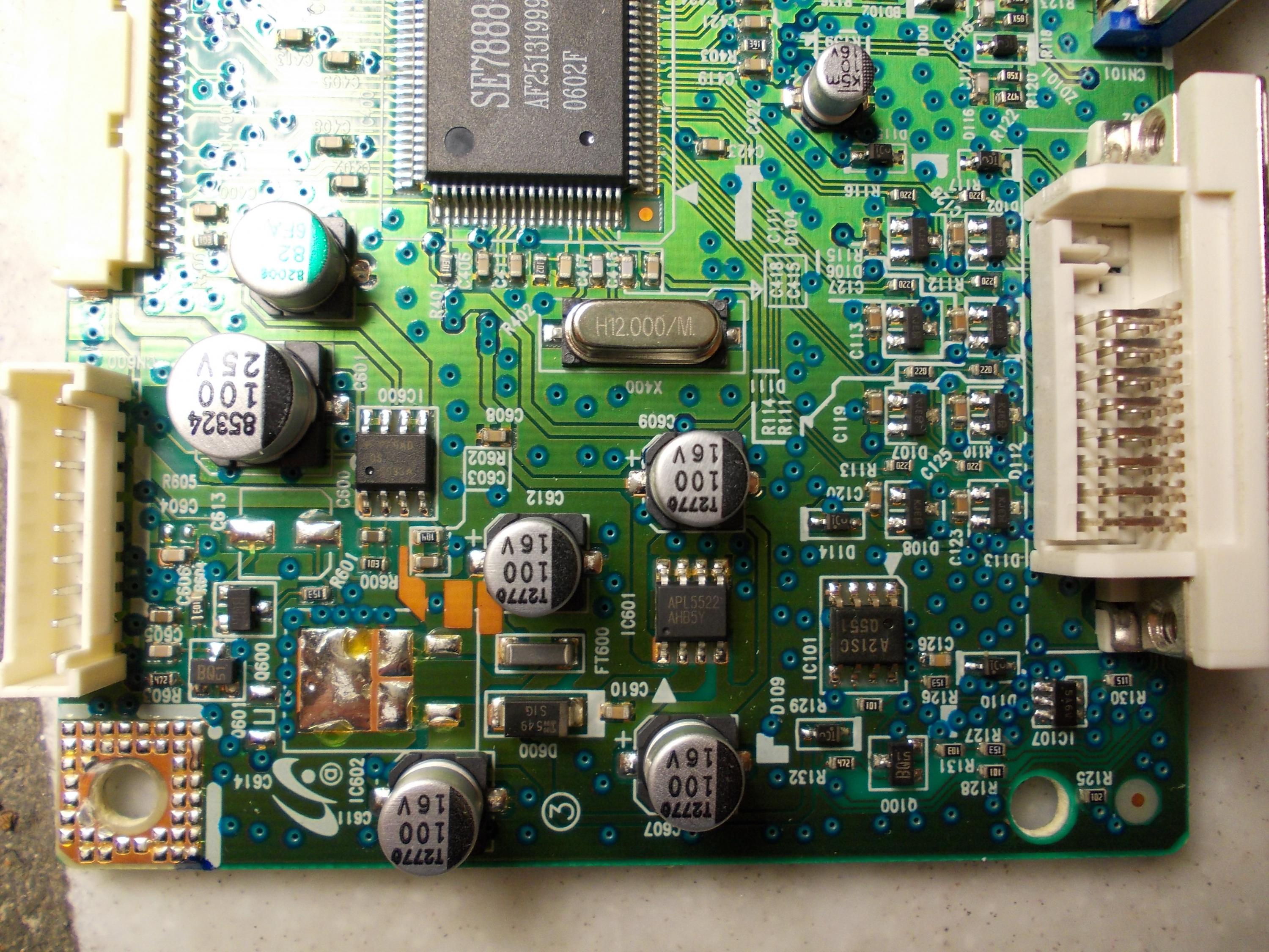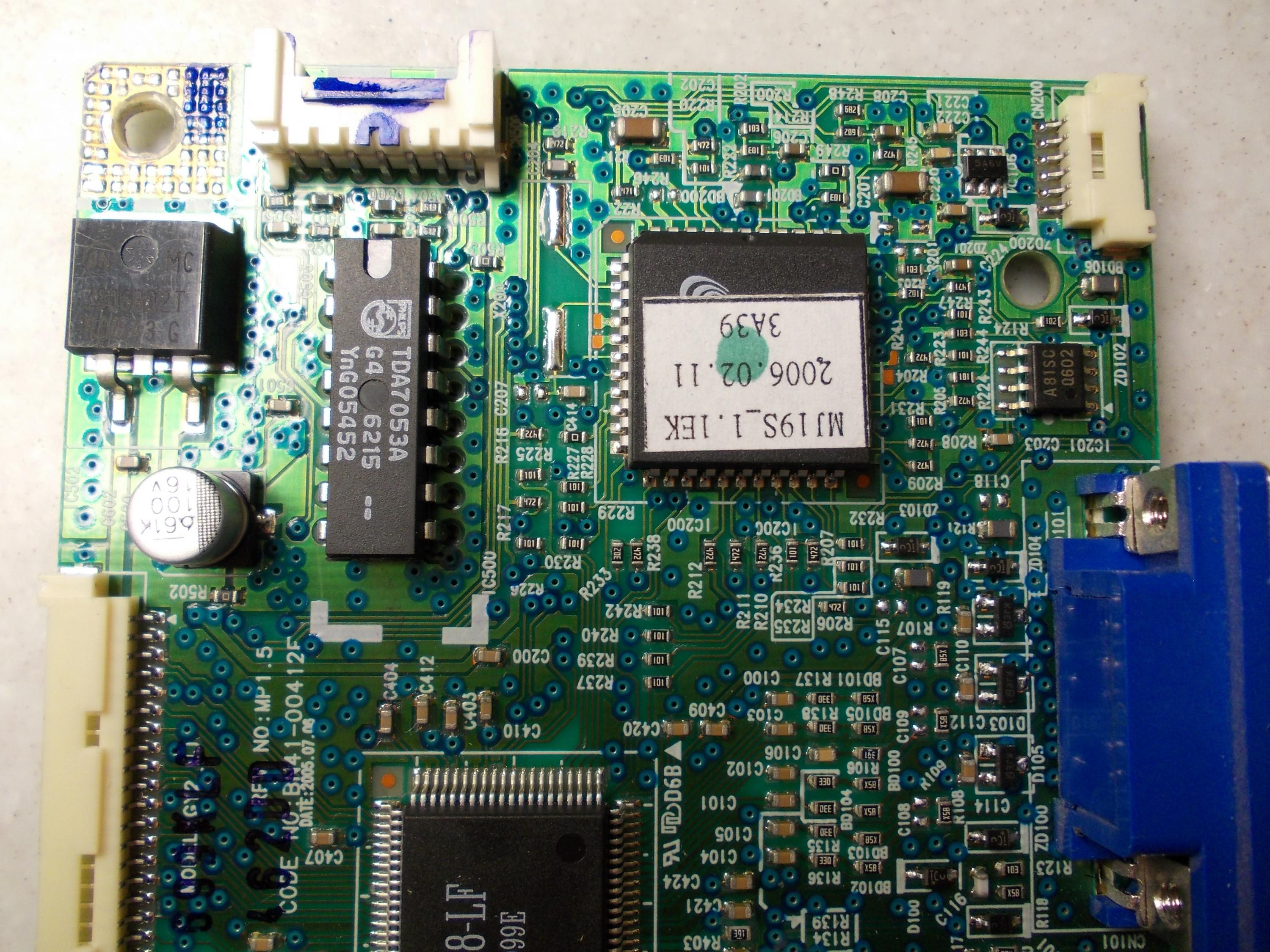 I've tested it with good components frome the other monitor and found out this is the board with the problem.