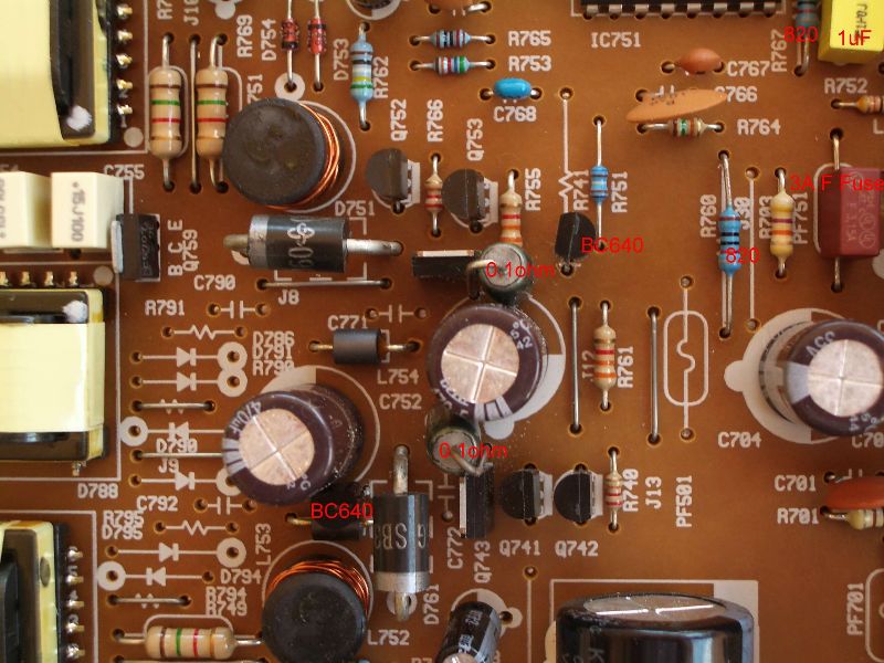 How does this mod affect performance? Increasing the MOSFET gate source resistance will increase the turn ON time by about 150nS when switching 7.2amps (based on data sheet). However the circuit max operating current is 1 amp so the increase in turn on speed and switching loss is much less significant. The switch OFF speed will not be affected because the 100 ohm is not part of the switch off circuit.