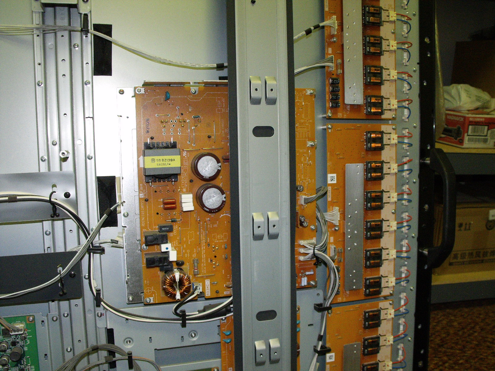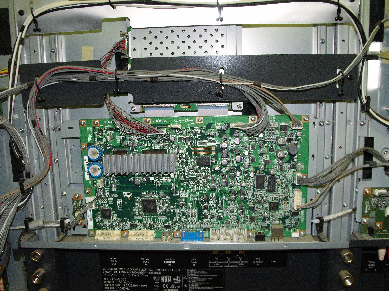 I have a huge Sharp PN-655 LCD monitor and it weighs a ton. What happens is I turn it on and it goes through a couple screens then off with green light flashing constantly on the front. I have a link for the video of what I see below. I did all basic checks for bulged caps or signs of heat and nothing so I though maybe a TCON??? any and all help is appreciated.