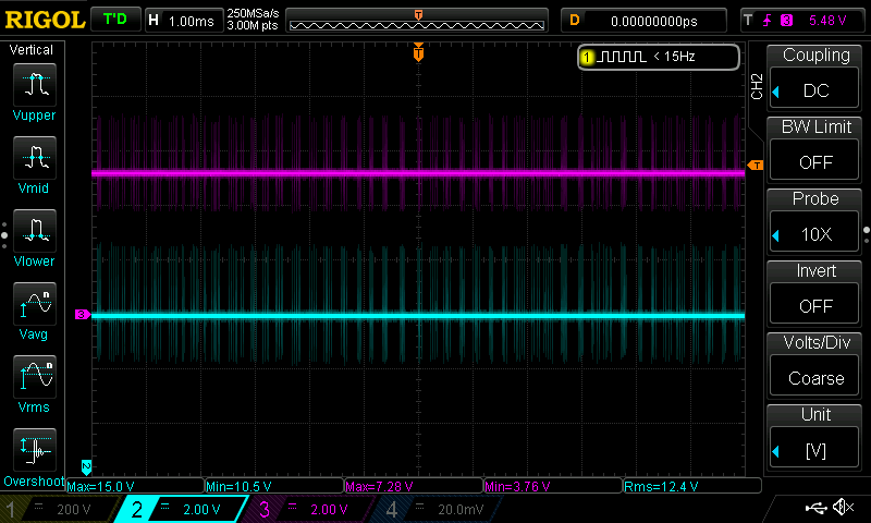 In my case also it's Vo4 that bumps to -60 after the first 'flash', and all others are at -30, then dropping off as the light's off. (Capacitors discharging when 'idle', I suppose.)