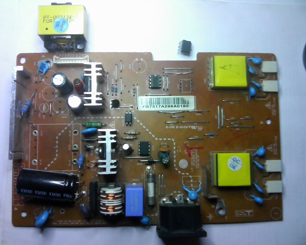 I have a LCD L1953-PM that died on me. I opened it up and I found a bad capacitor in the power board. I also found that there was a short circuit between 12V and GND, So I disassembled the components one-by-one to see where the short circuit was. The components I disassembled were: (C201, C202, C203, C204, C205, C206, C207, R202, R109, R111, D201, T101, ZD101, U303).