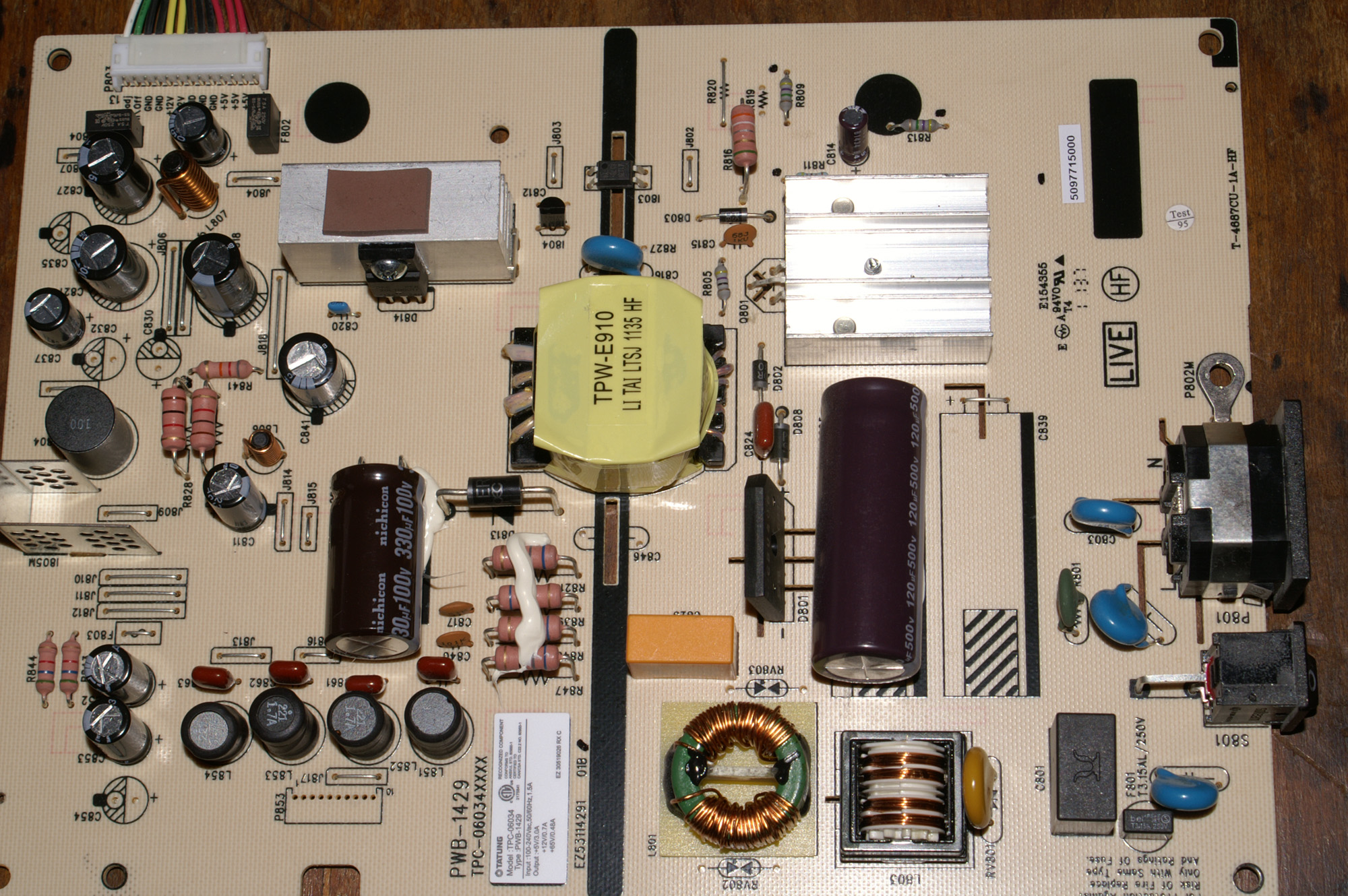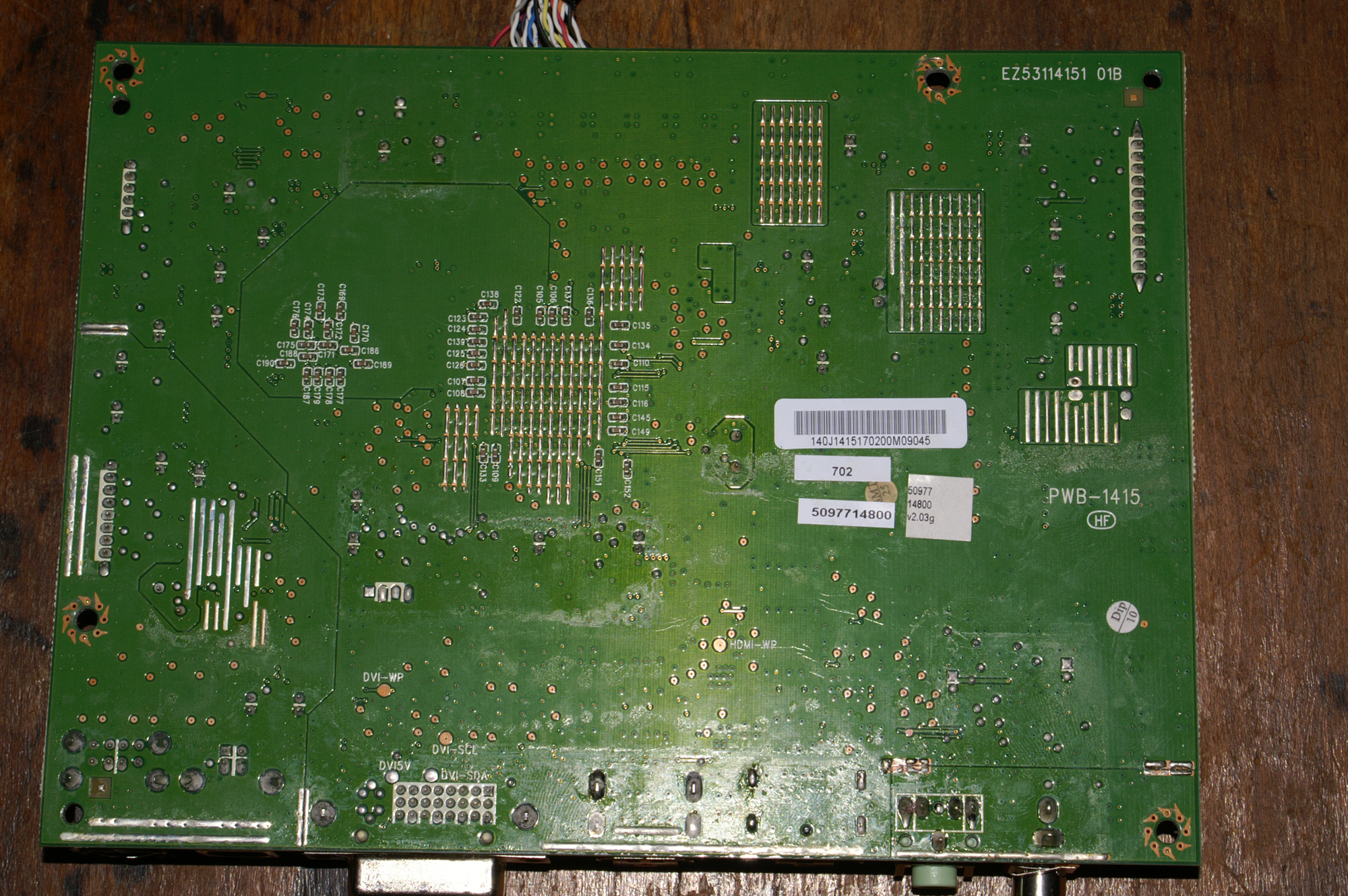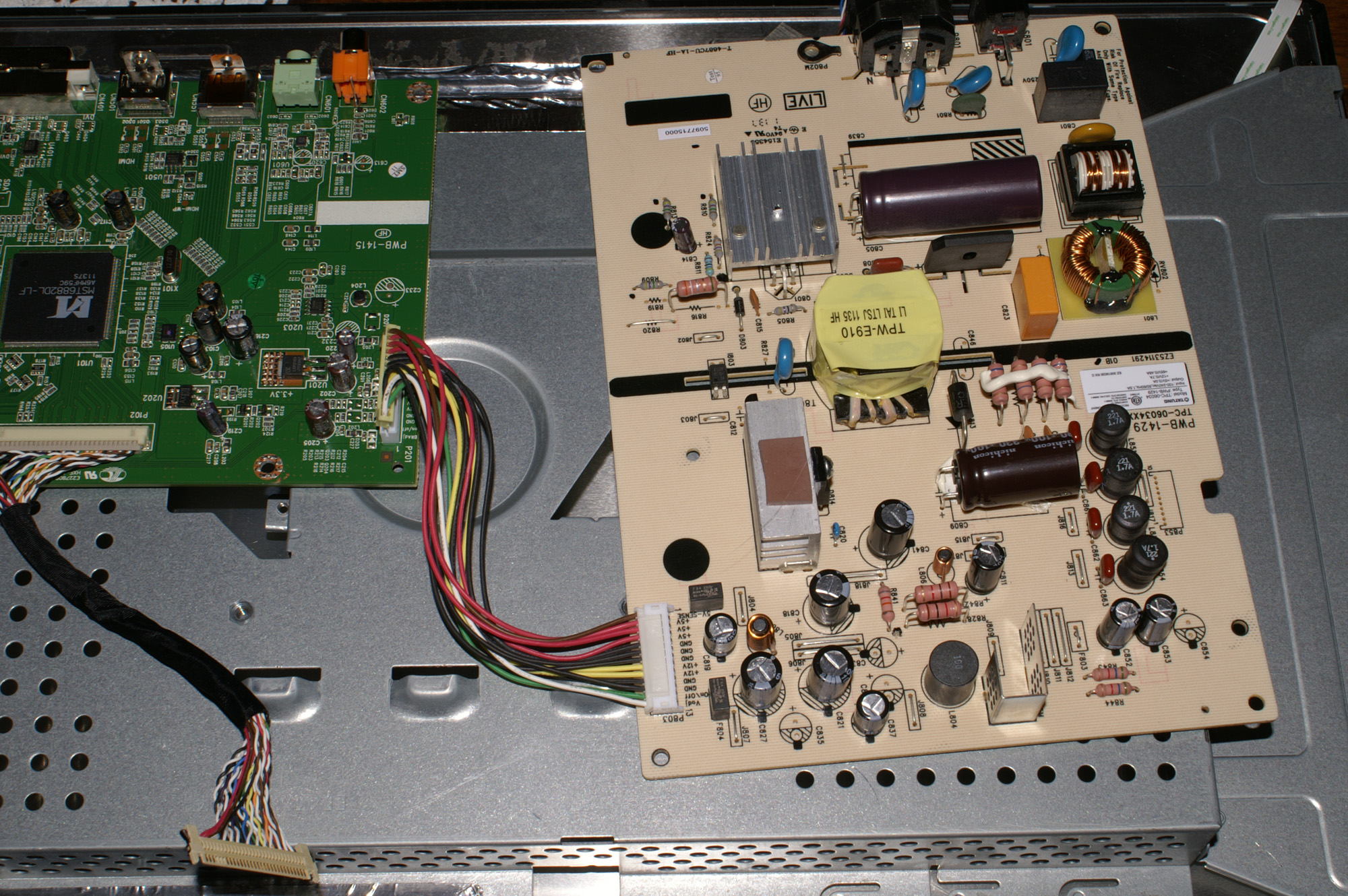 I have a set of HP ZR2440w LED backlight monitors. One of them is having issues with the backlight. On certain backgrounds (like the one at php.net) I notice it flickering. The other zr2440w has no such flicker problem. The major issue with it is that the backlight cuts out for a fraction of a second intermittently. This happens a lot more frequently when it's first turned on after it has been off and cold overnight, so it seems to be temperature related. I suspected the capacitors in the power supply might be bad, so I opened up the monitor to have a look.