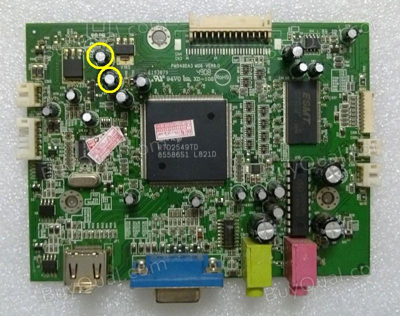 only those two or enrire caps. I ask that because when I connect vga cable it takes shorter time for display to disappear than when I use hdmi cable. Also I would like to know which part has failed that make the monitor not to operate for long at maximum brightness. i will appreciate