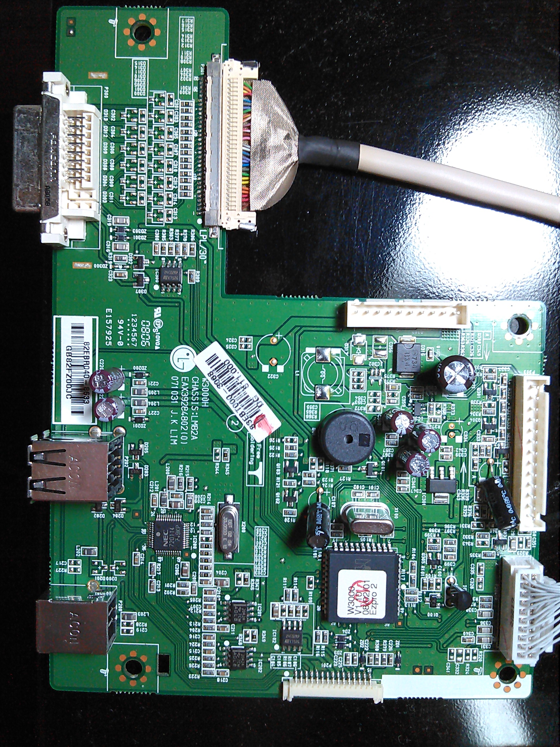 Hi! My LG W3000h-bn switched to standby while working, and has been stuck in standby mode since, even after hard restarts. I've confirmed the computer, cables and mains are fine. The power button works but goes straight to amber standby light, the display never comes on.