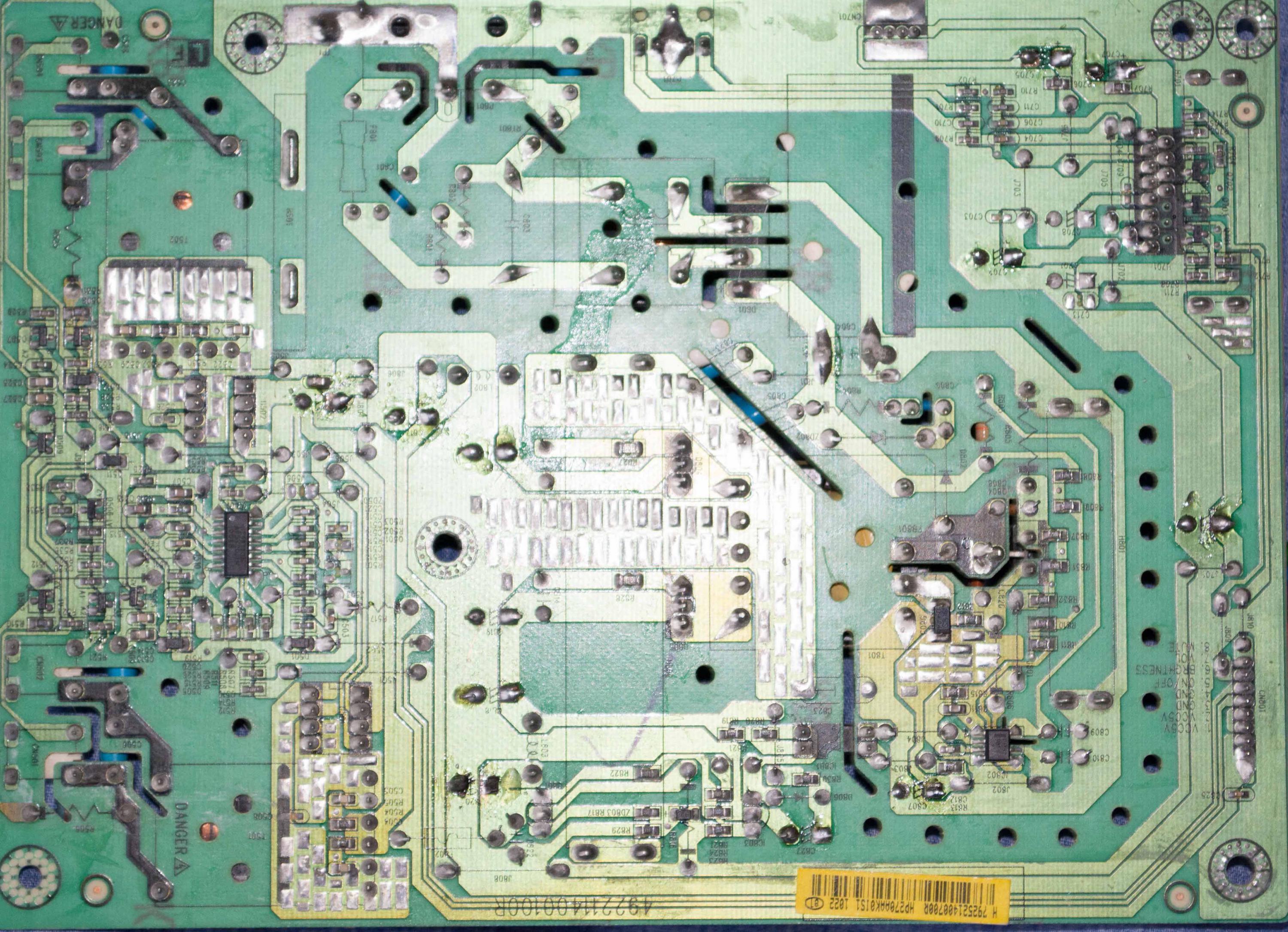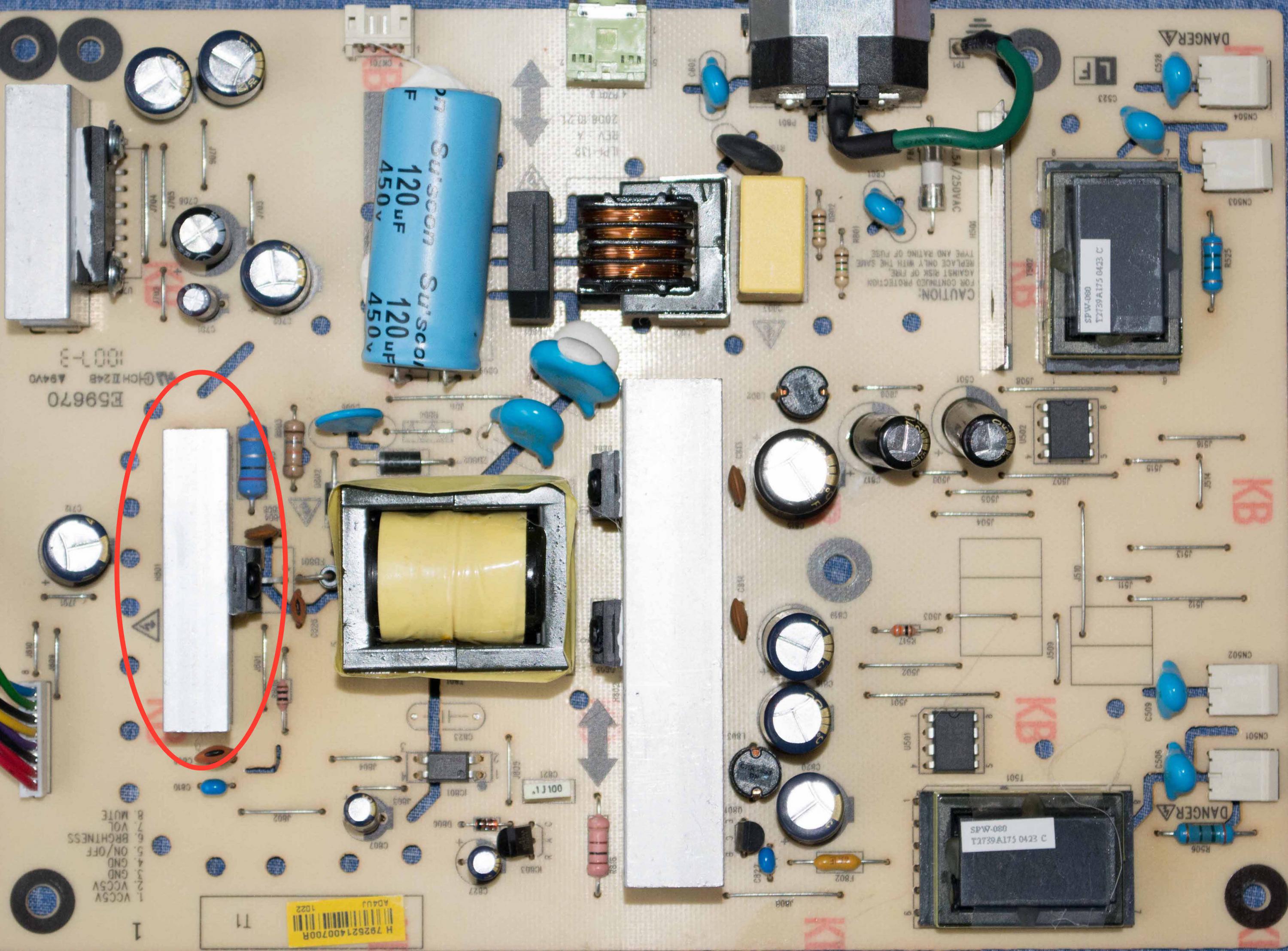 However, none of the 15 caps on the power board or the six on the main board showed any sign of bloating.